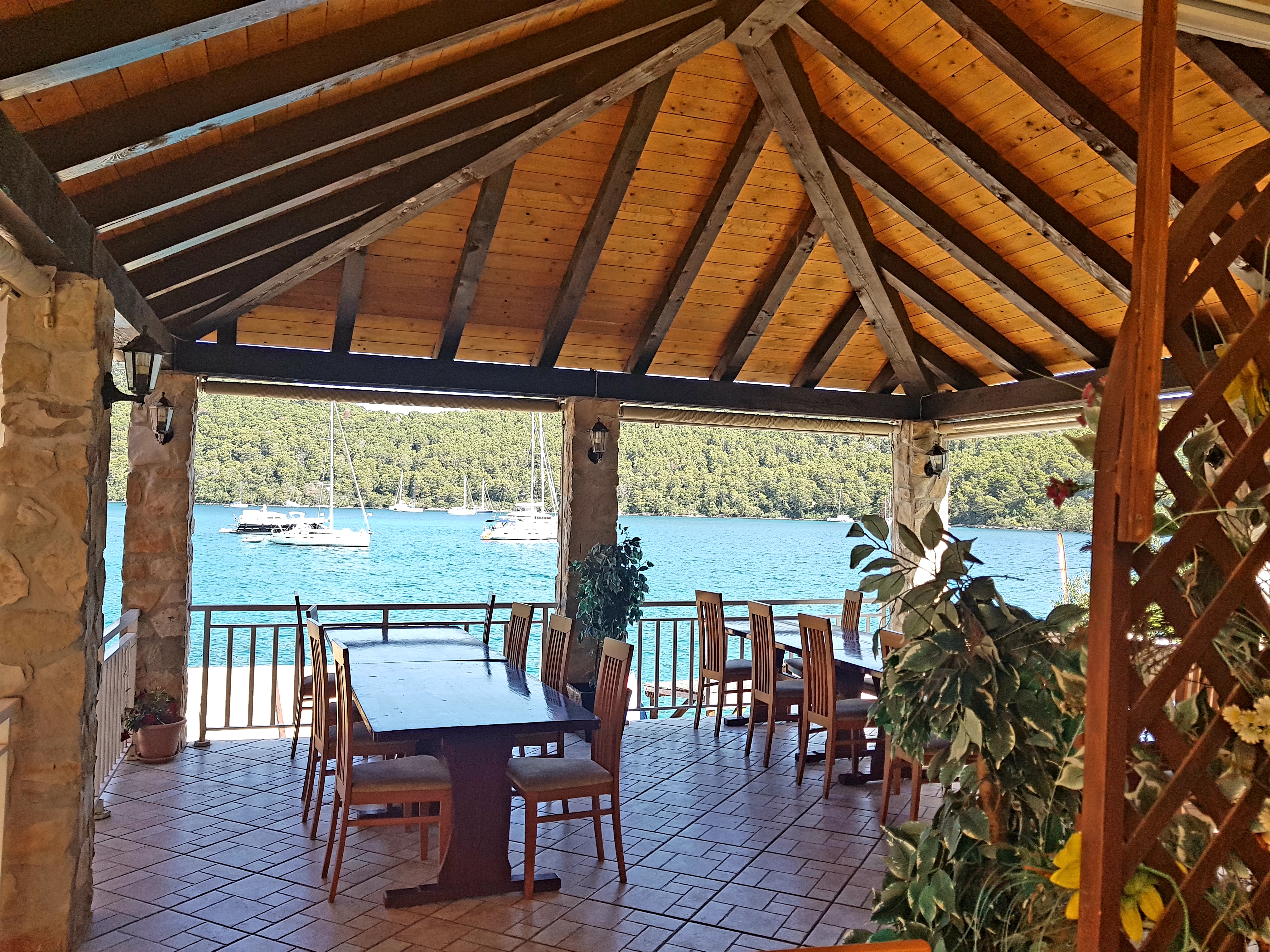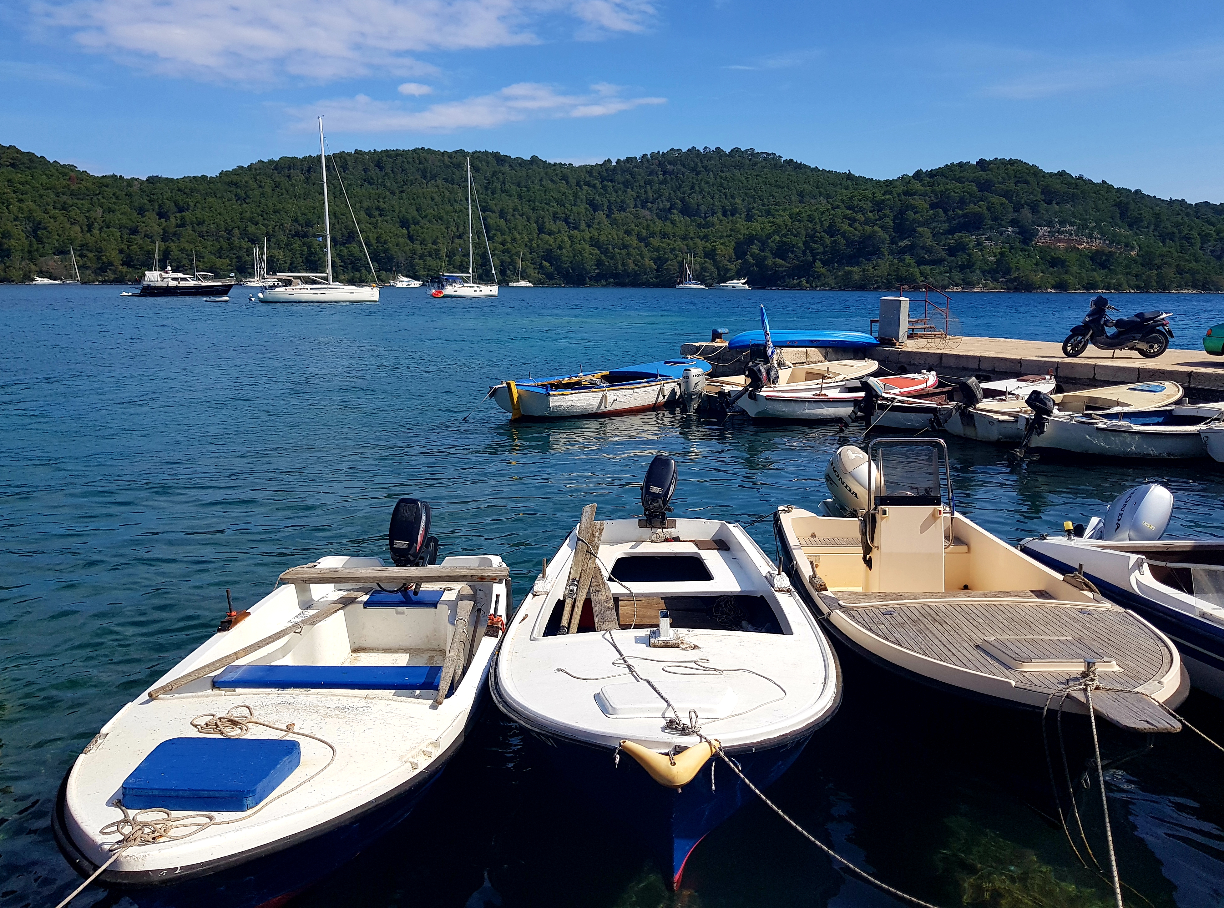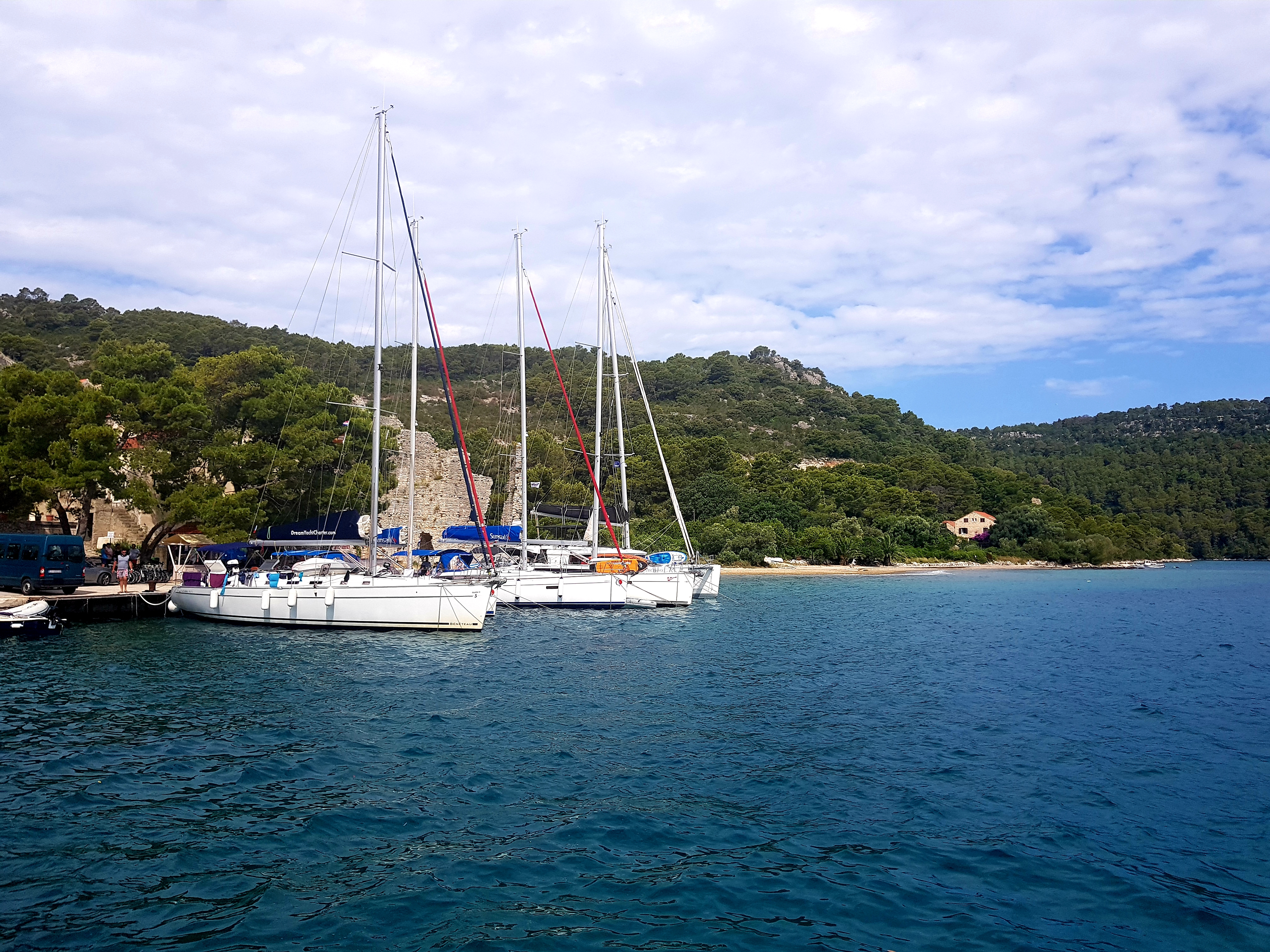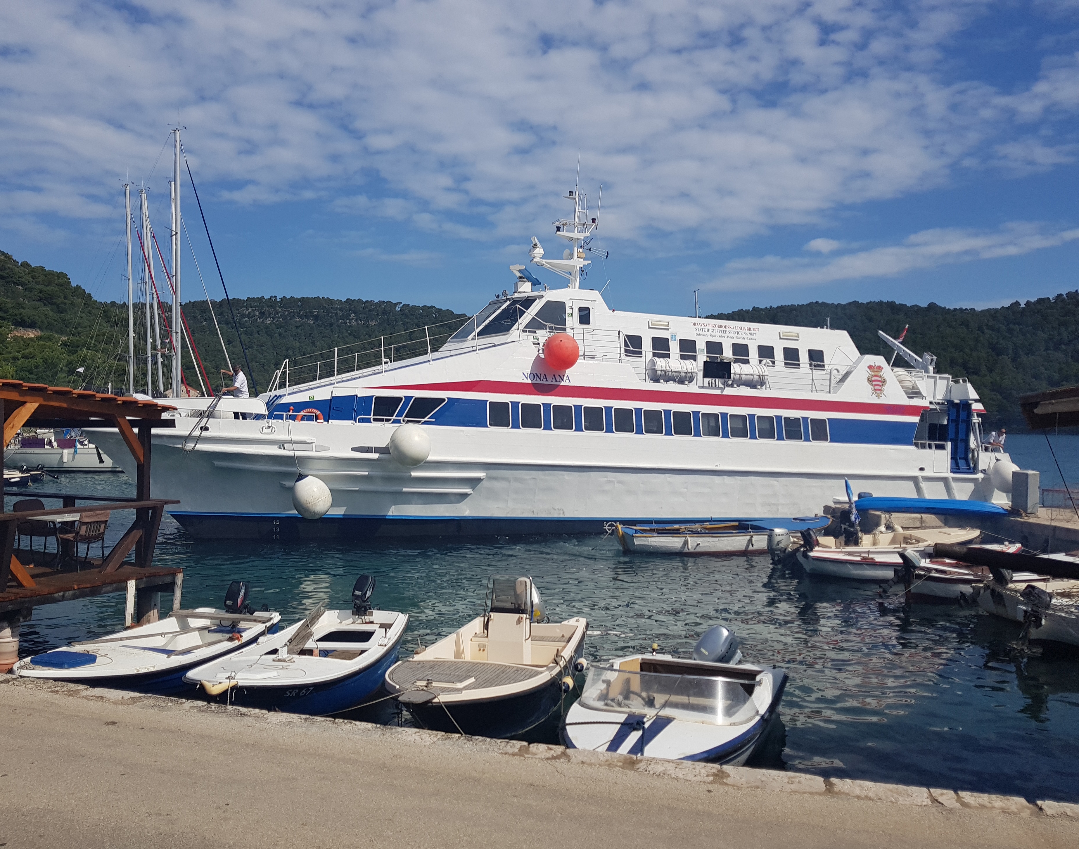 船上比我想象中更宽敞,一点儿不拥挤。我们稍微休息了一下,不到两个小时就到达了Polace 港口。这个港口及小村庄位于Mljet岛的西北处,据说是整个岛上最大的港口。