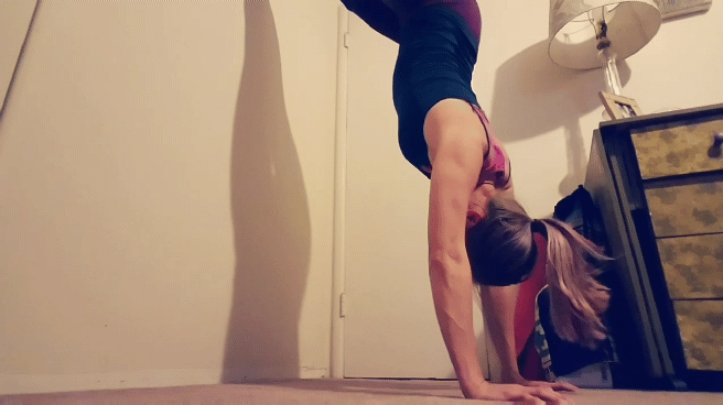 Handstand is one hard pose to nail. It takes a lot of patience and work, you pretty much use every muscle in your body. I started bunny hopping, that sounds (and looks) a bit silly, but starts laying a foundation for stronger arms.