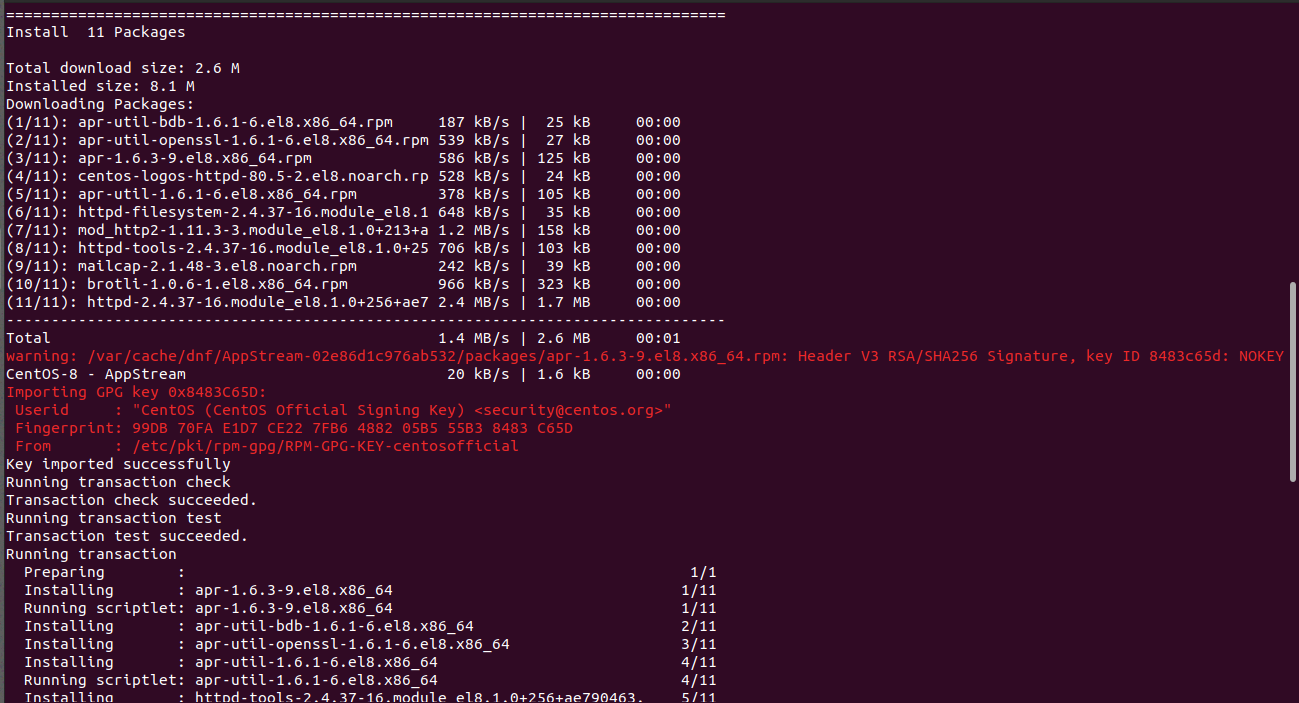 The code above will create a base image from centos and after that apache will be installed into the docker container.