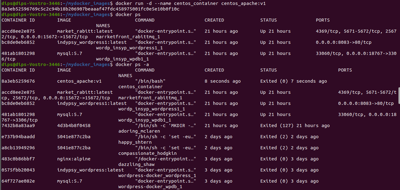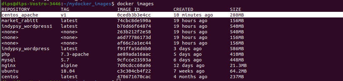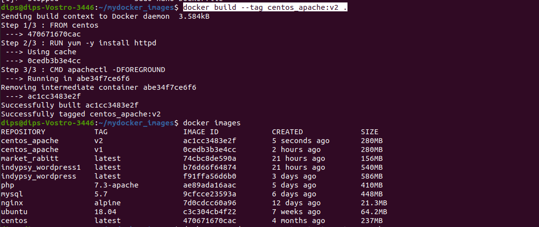 Above we can see the image named as centos_apache is built with v1 tag.
