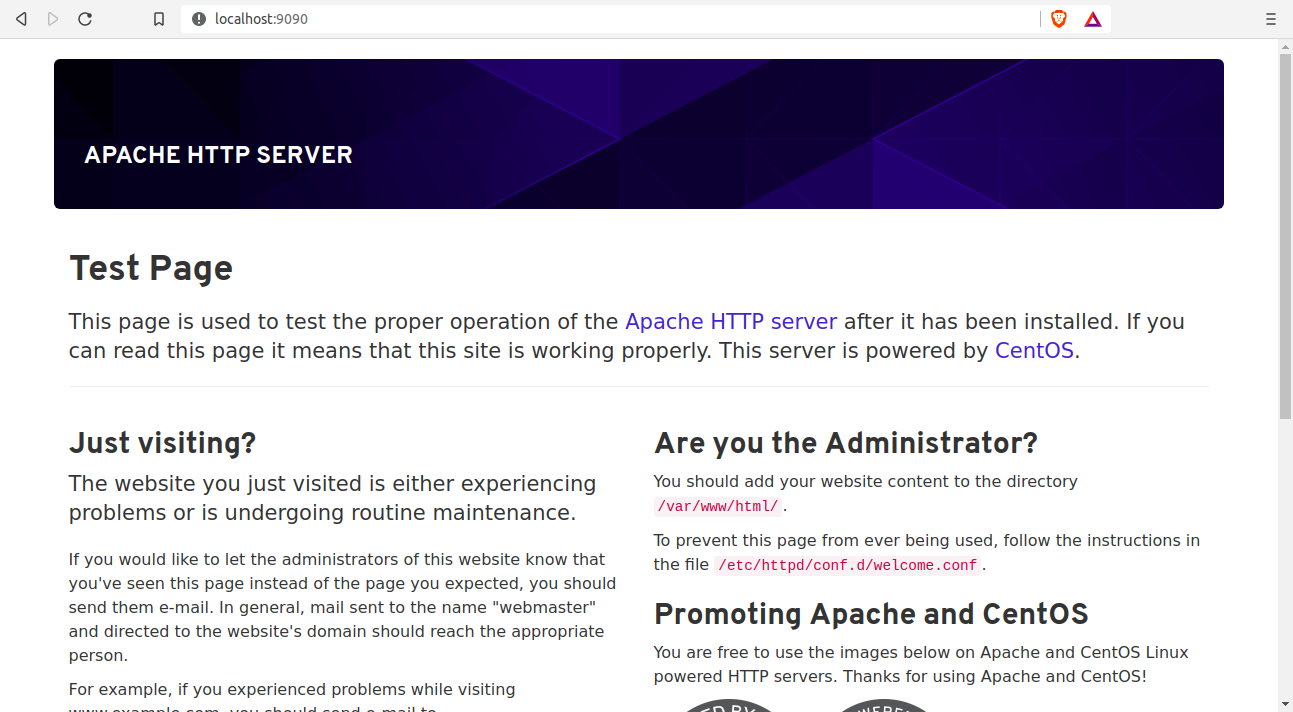 Now if I check my localhost in port 9090 i will be able to see apache is running on centos as below.