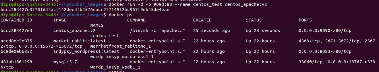 docker run -d -p 9090:80 --name centos_test centos_apache:v2