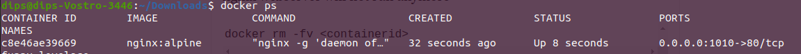 Now lets remove the container and will be able to see at 1010 port the nginx webserver will not run anymore