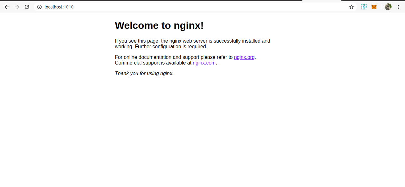 This command has created a container of Nginx webserver in 1010 port