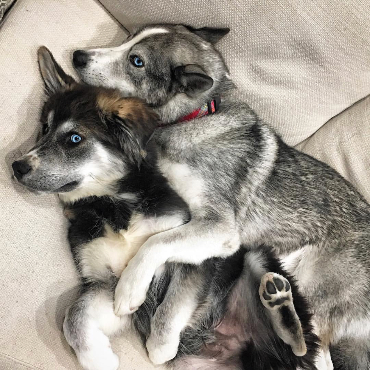 The two are a really cute husky Family ! They always sleep together and play together no matter what happens 😂😂🐶🐶