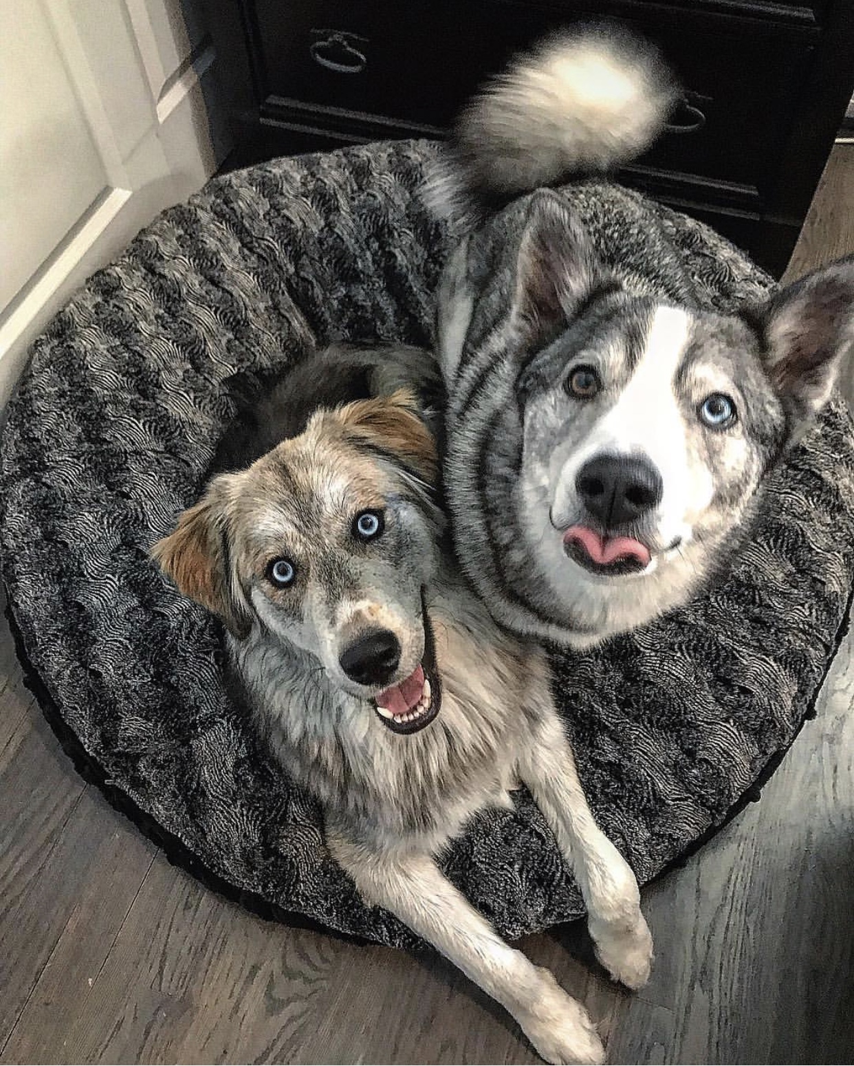 The two are a really cute husky Family ! They always sleep together and play together no matter what happens 😂😂🐶🐶