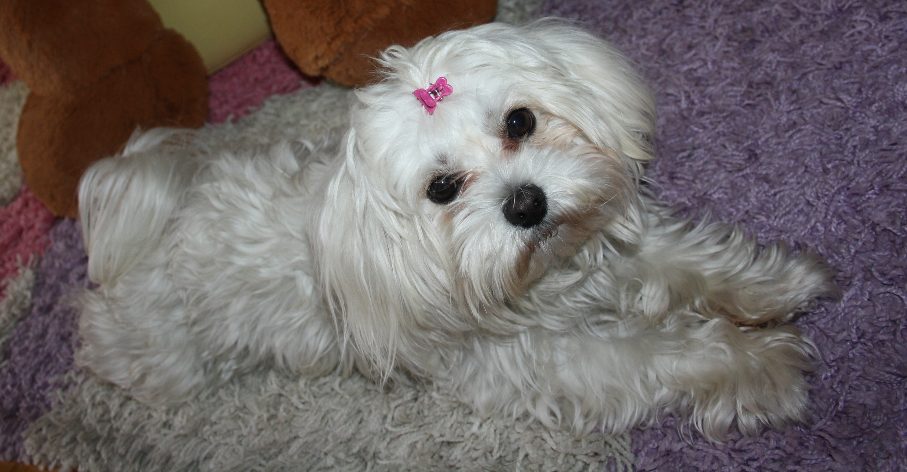 Hello, this is my little dog and his name is Puppy so I have to write something about this breed. Maltese does come from its namesake, Malta. The Maltese is one of the oldest-known breeds of dogs, and is said to be over 2800 years old. The small dogs happily sat on the laps of the Ancient Greeks, Romans, and Egyptians.