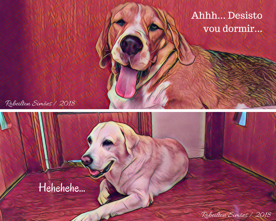 Um Beagle e um Labrador que adoram latir; pular; comer e, sempre que possível, tirar uma soneca.