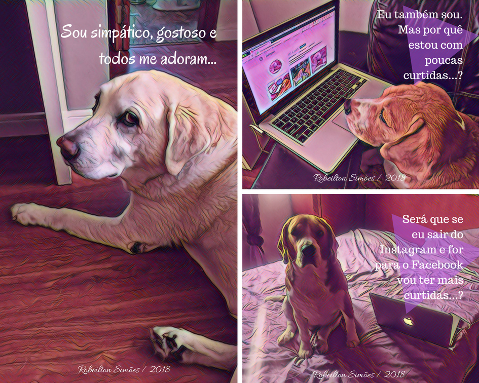 Nos últimos dias andou se aventurando no Instagram e descobriu que seu melhor amigo Guga ( um simpático Labrador ), tinha mais curtidas do que ele.
