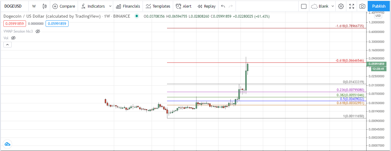Let me be really clear here, I'm most likely wrong and this is not investment advice because most of you will lose your money. With that said, I have been amateur retail part time trader for the last 15 years: traded FX (eurusd, eurjpy, gbpusd) and US futures markets (NQ, MES, MNQ). What I have learned from trading, never fight the underlying trend no matter what your personal opinion may be. Therefore, doge looks like it could explode to the upside, and if it does explode to the upside, it will most likely return to it's starting point or close to it.