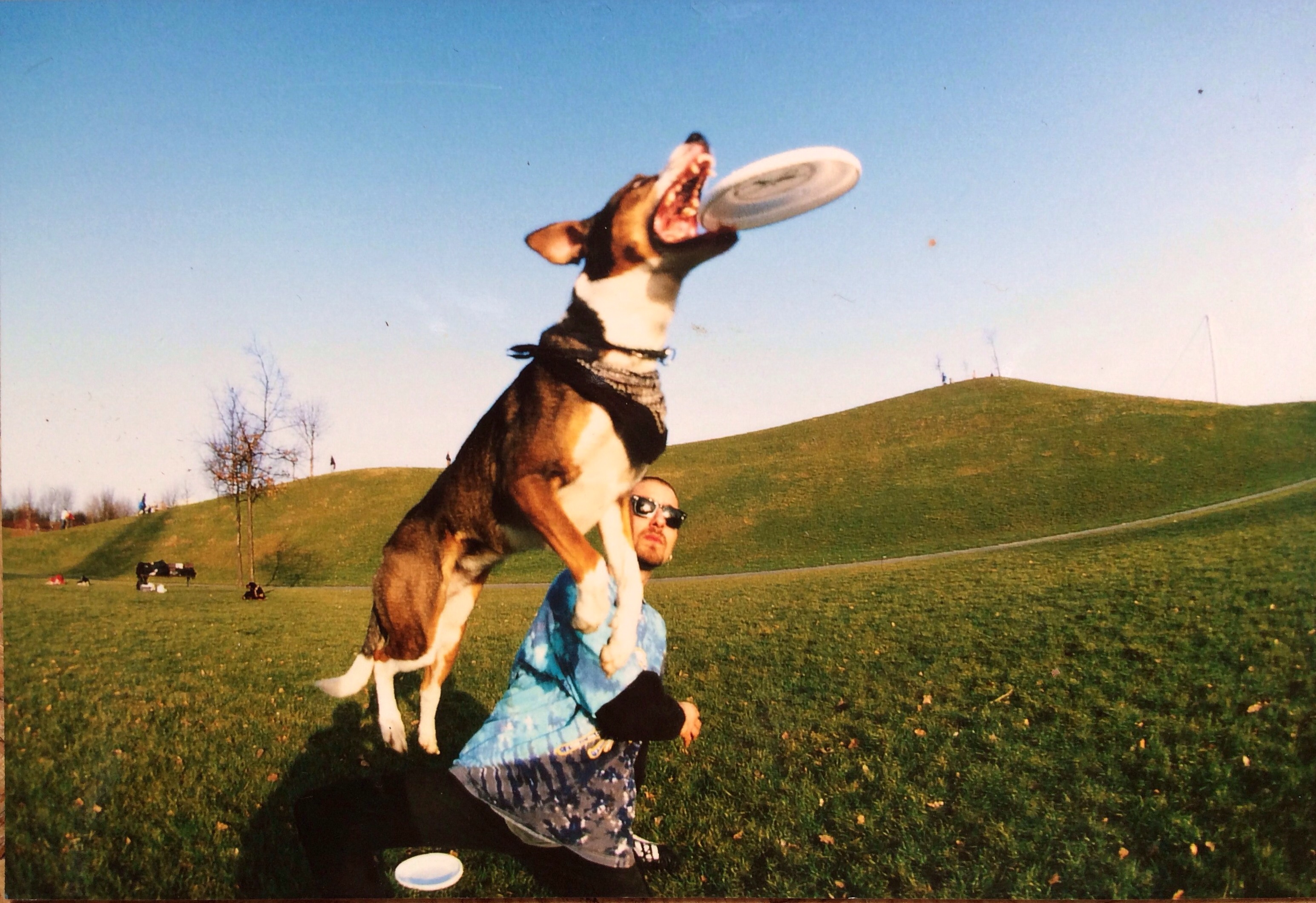 finally made it to steemit, thanks to @madcracke, @jeffleinwand and @d-vine . I am really exited about this new community and how it works. Let's see if there are other dognuts and frisbee addicted people in here. In the picture you ca see my first dog "Butch" he introduced me to the world of dogfrisbee and discdogging by accident. He stole our disc when we played frisbee in our be love hometown park "Schlossgarten"