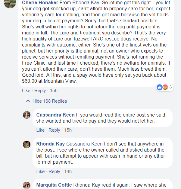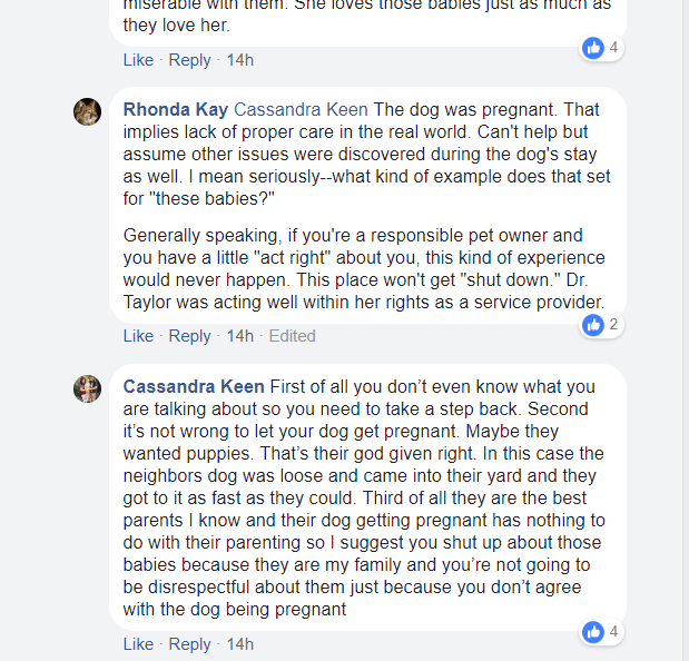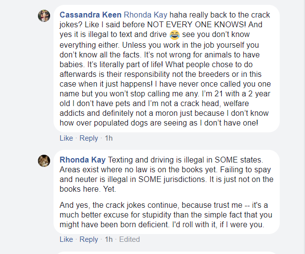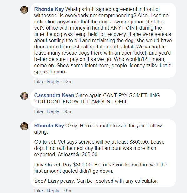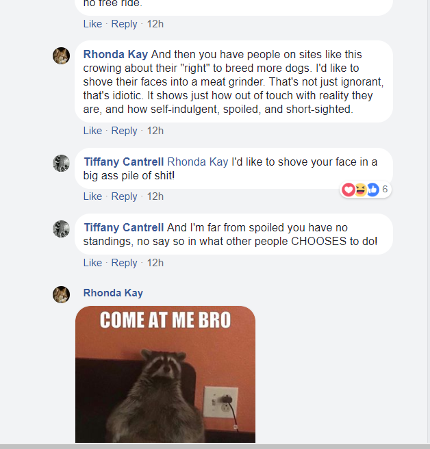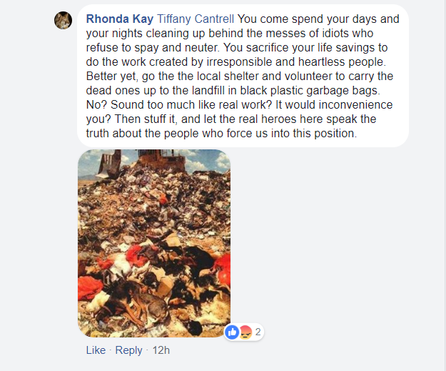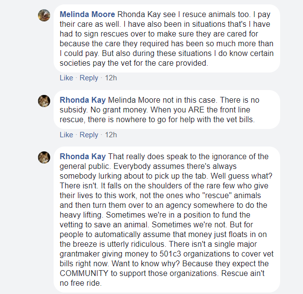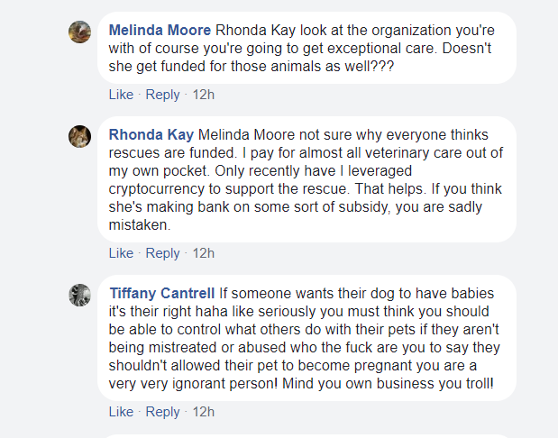 My rescue’s Facebook post about this situation can be found HERE. The offended parties in this situation have added many screenshots in the comments, but I made sure to save them in case the backlash gets too heated and they make them disappear. I've put a lot of those screenshots in this post. Yes, for the entertainment value, but also to capitalize on the Blockchain's permanency. I've had a blog hacked and deleted before. It's one of the things that drove me to Steemit in the first place.