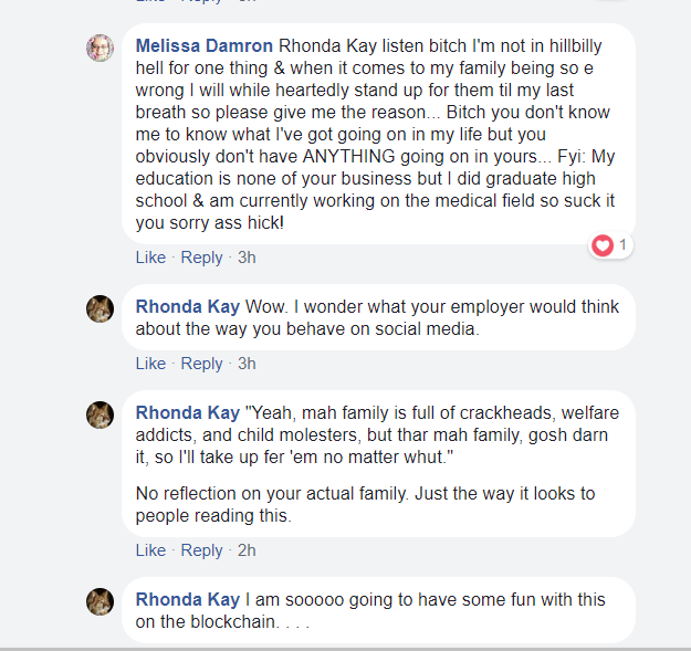 Next, I will share a collection of screenshots as a record of the conversation on Facebook. They're entertaining and somewhat educational, but not critical for understanding the situation. The Blockchain is the safest place to store them. When possible, I've tried to leave clear evidence that they are directly consecutive with no gaps, but in fact there are gaps because I simply could not post them all. There are hundreds. I grabbed the ones that seemed most relevant. You are welcome to follow the link I provided earlier to the Facebook page and see them in situ.