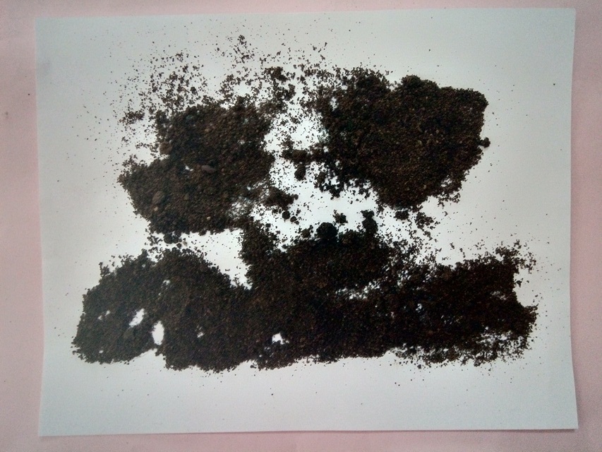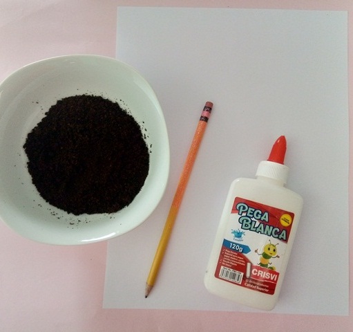 Paso 3. Luego fui echando café en toda la hoja hasta cubrir todo, porque al quitar el exceso solo quedarán coloreadas las partes en donde está la pega