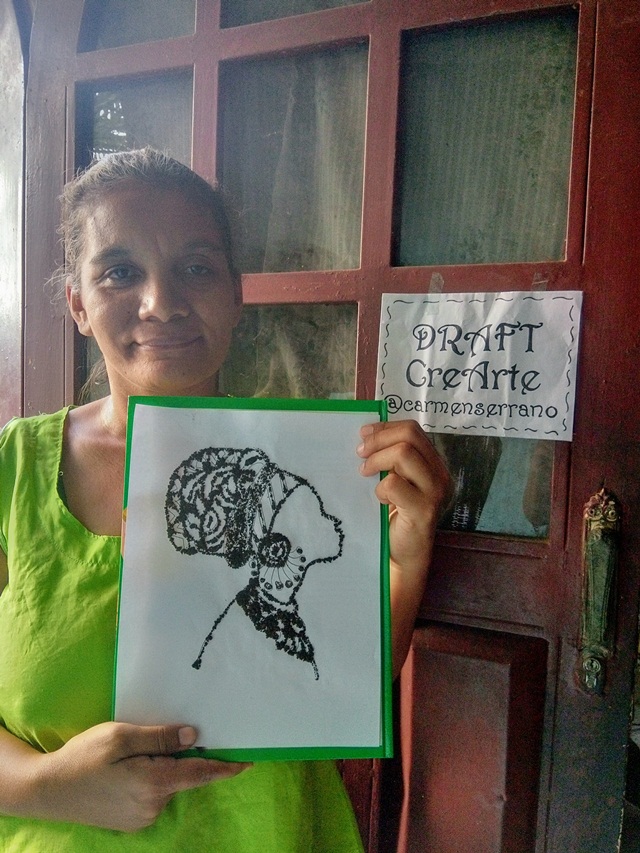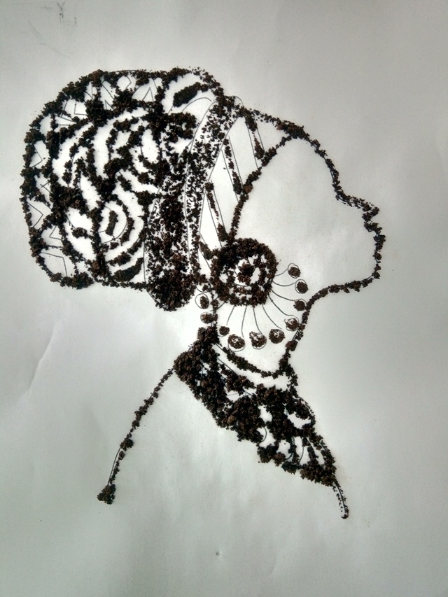 Hola amigos de DraftCrearte!! Estoy súper contenta de participar en este concurso, sin duda todo un reto creativo que me permitió experimentar con un material tan extraordinario como es el café. Me encanta el café en altas dosis, sobre todo si es acompañado de galletitas, tortas, pancitos dulces… y una buena compañía hace más grato el momento!! Para mi arte, utilice café en polvo y entre tantas opciones, me decidí por realizar la figura de una mujer africana ya que estos cuadros me gustan mucho. Fue una experiencia muy enriquecedora, disfruté mucho