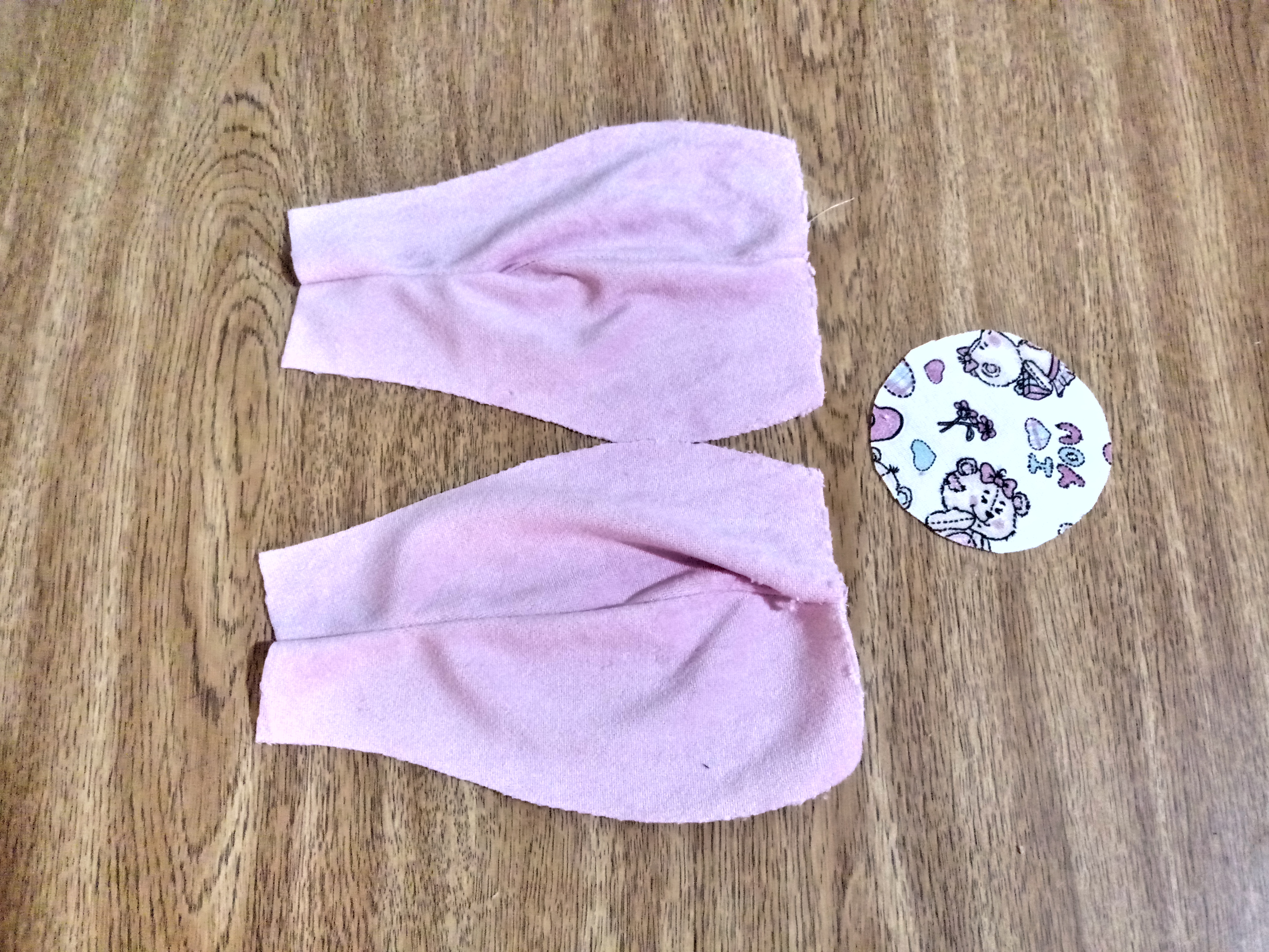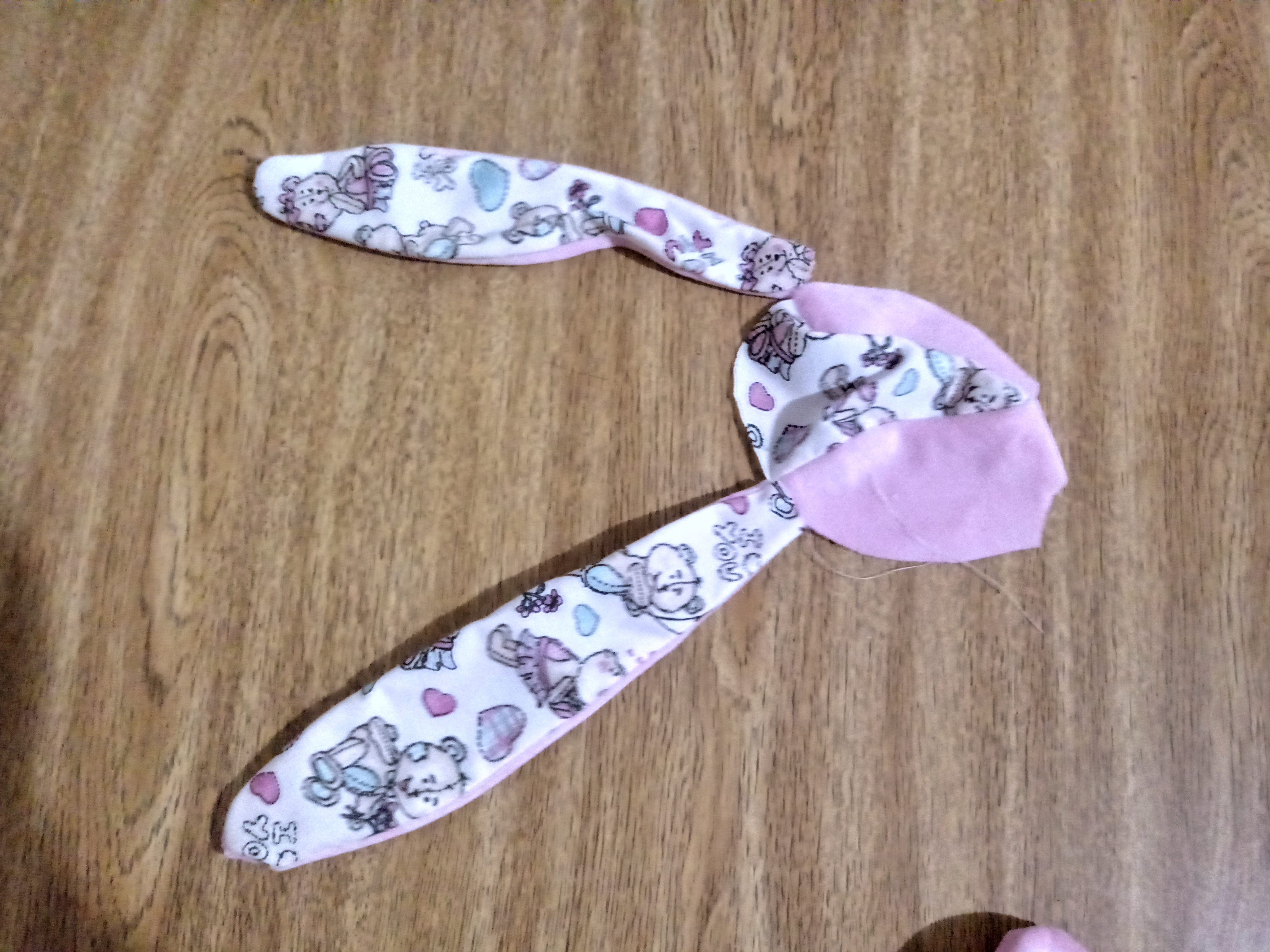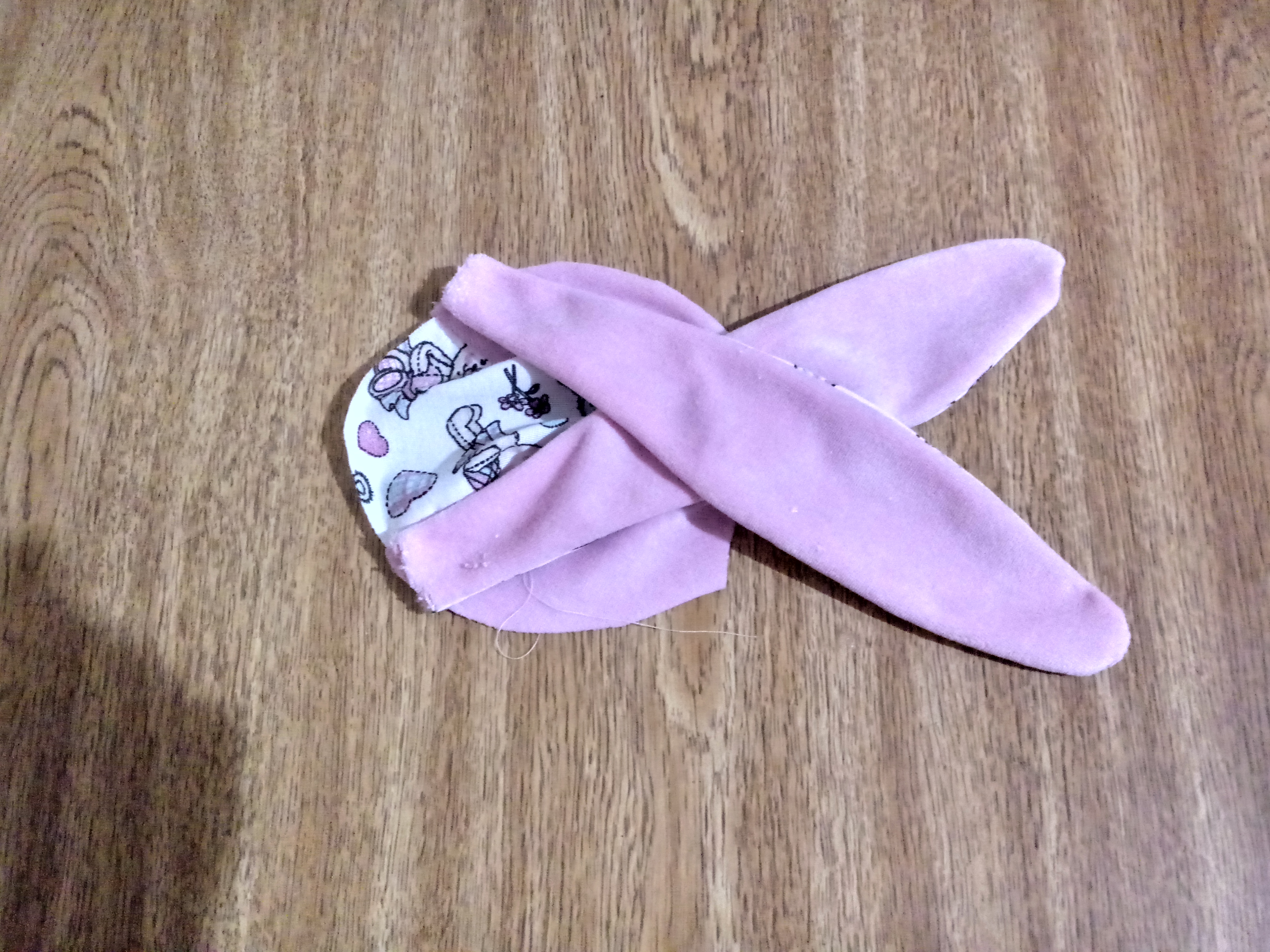 Cosemos las orejas, recordando de una parte es unicolor y la otra estampada.