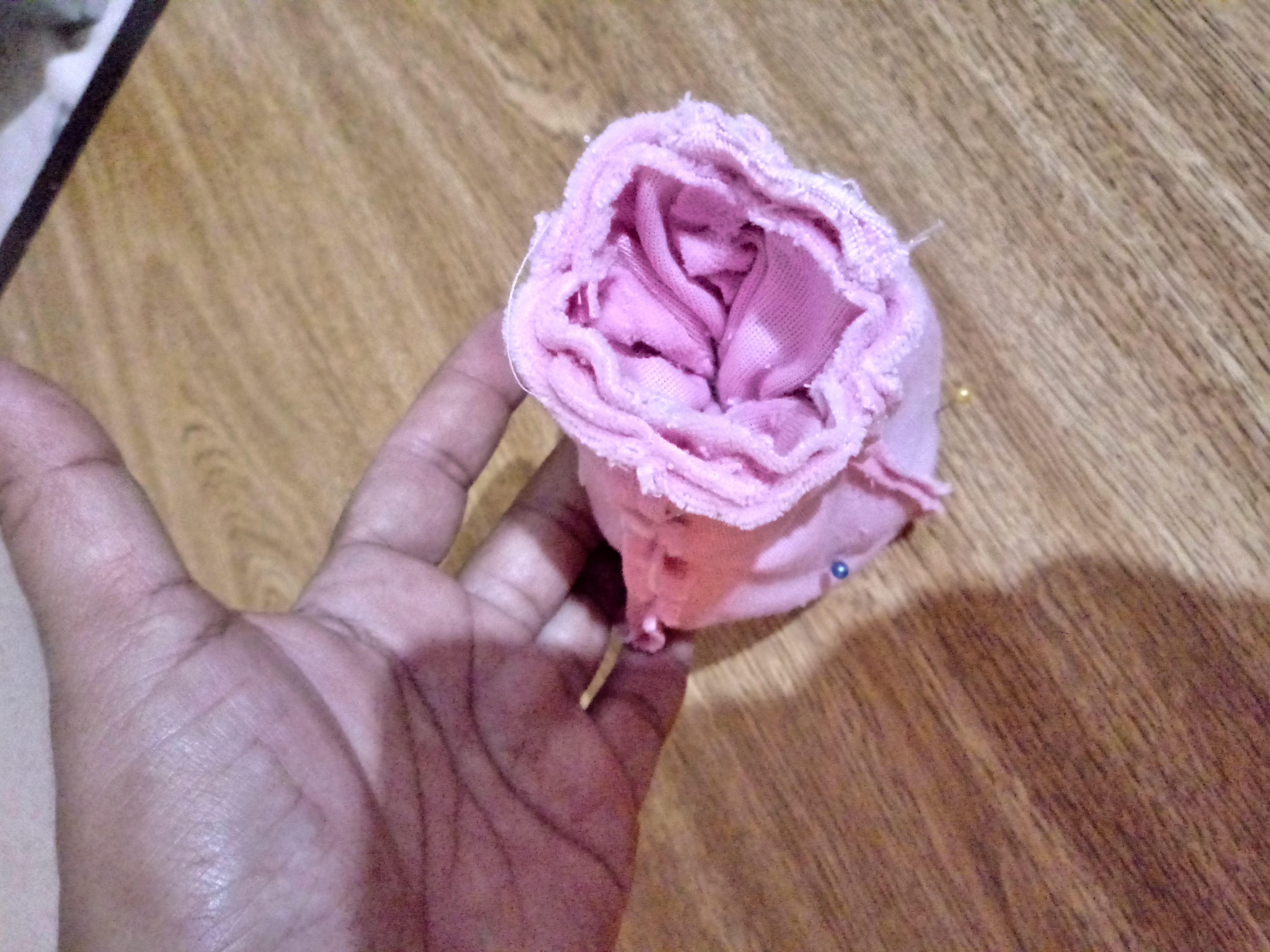 Ahora vamos a coser la parte posterior de la cabeza. Esa pieza tiene dos partes la cual cosí dejando un pequeño agujero en el centro para poder rellenar esa parte.