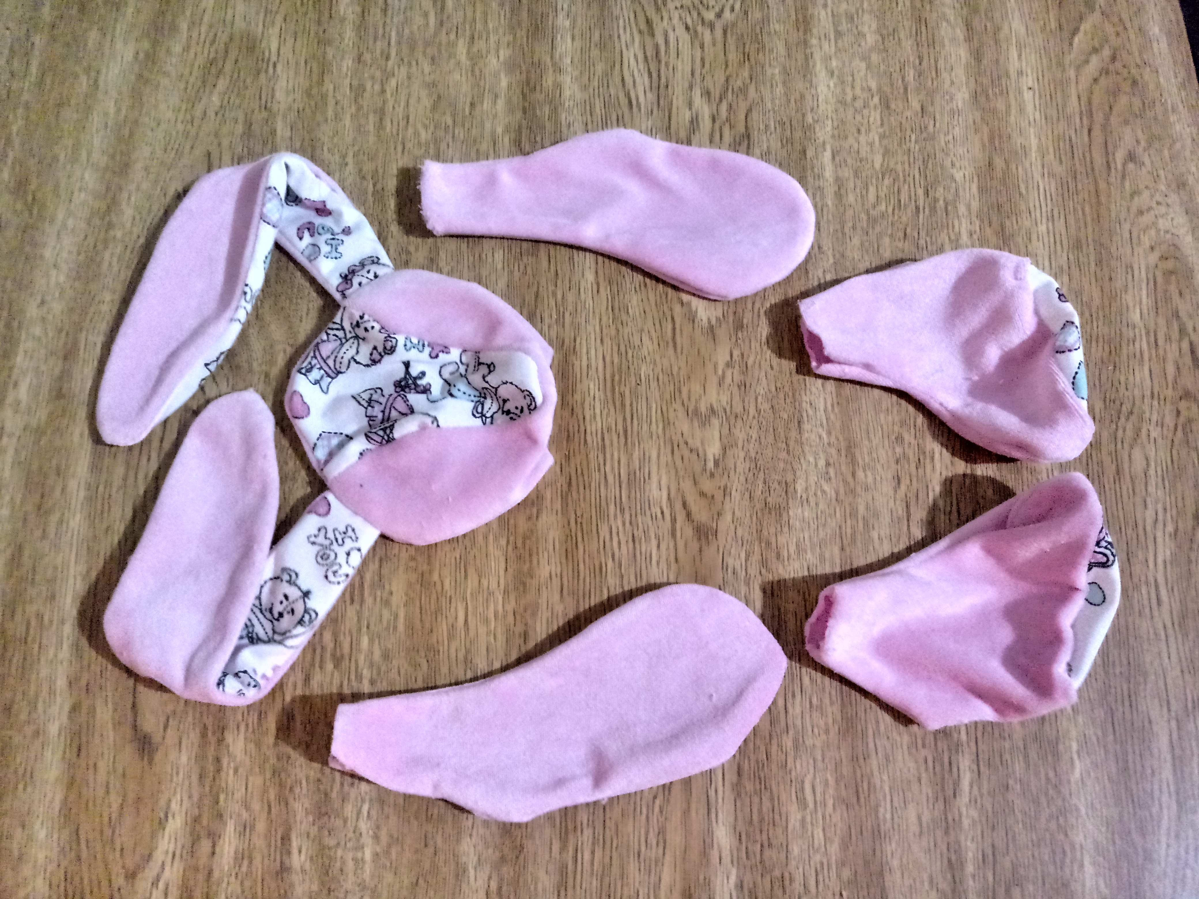 Ahora volteamos al derecho todas las piezas que hemos cosido.