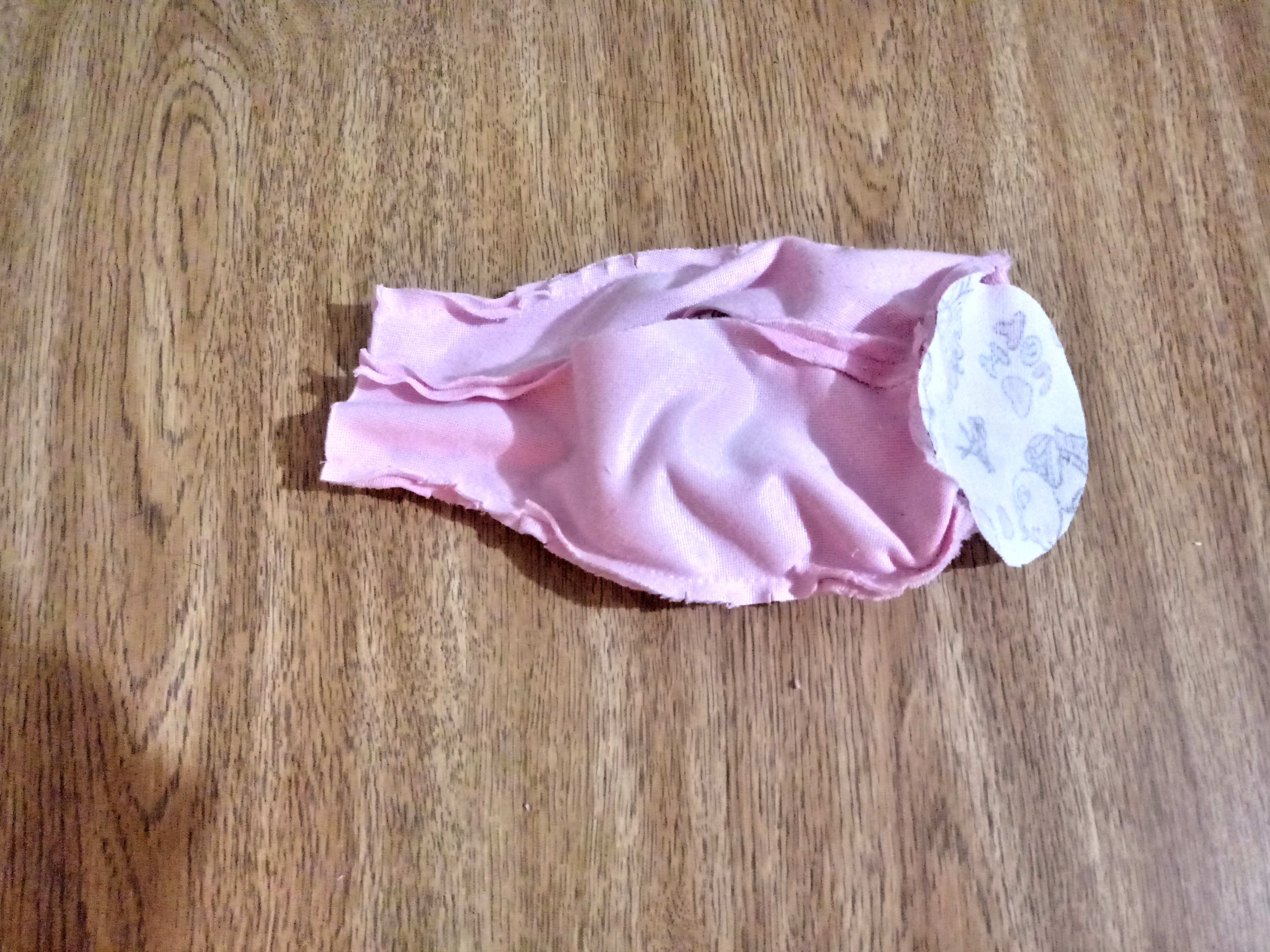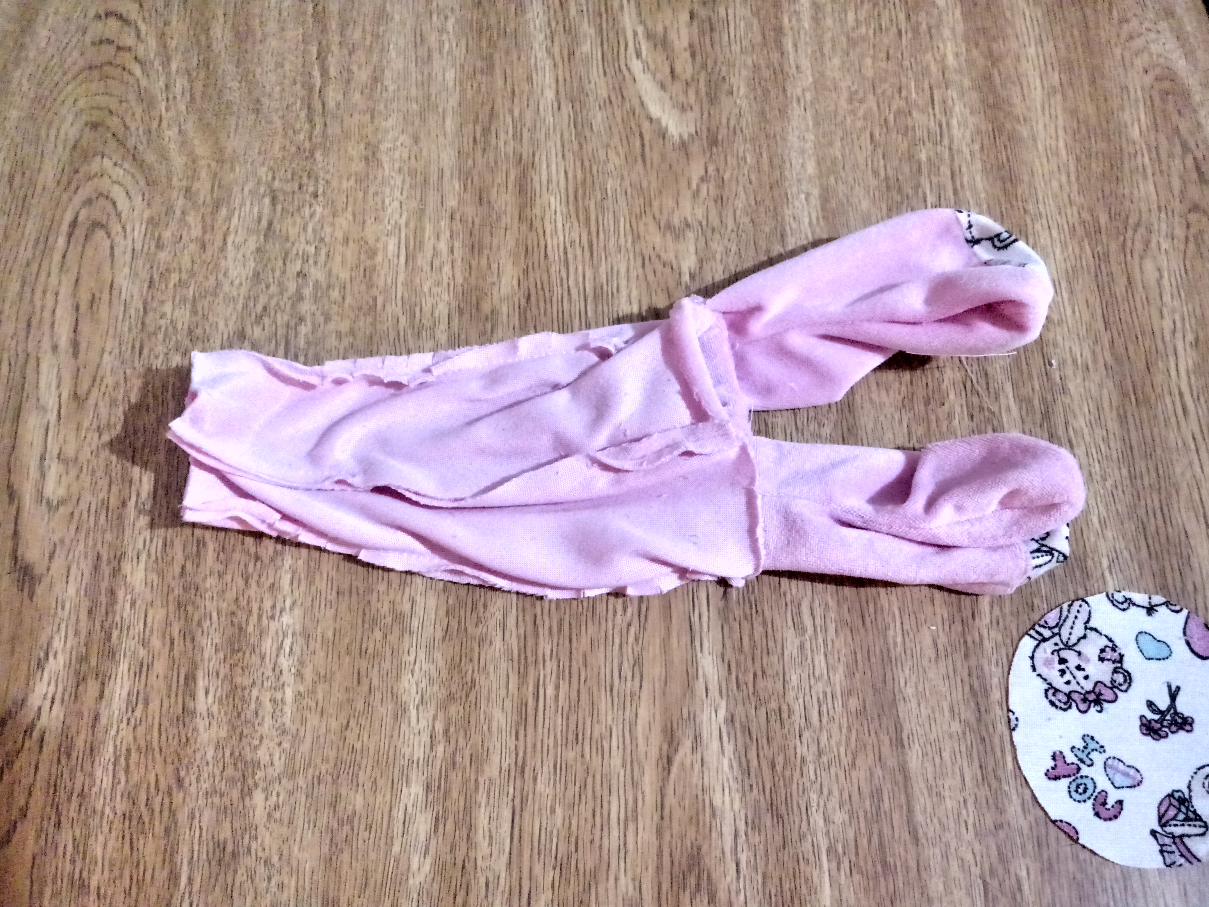 Lo siguiente es introducir también las patas hacia dentro del cuerpo y coser el fondo.