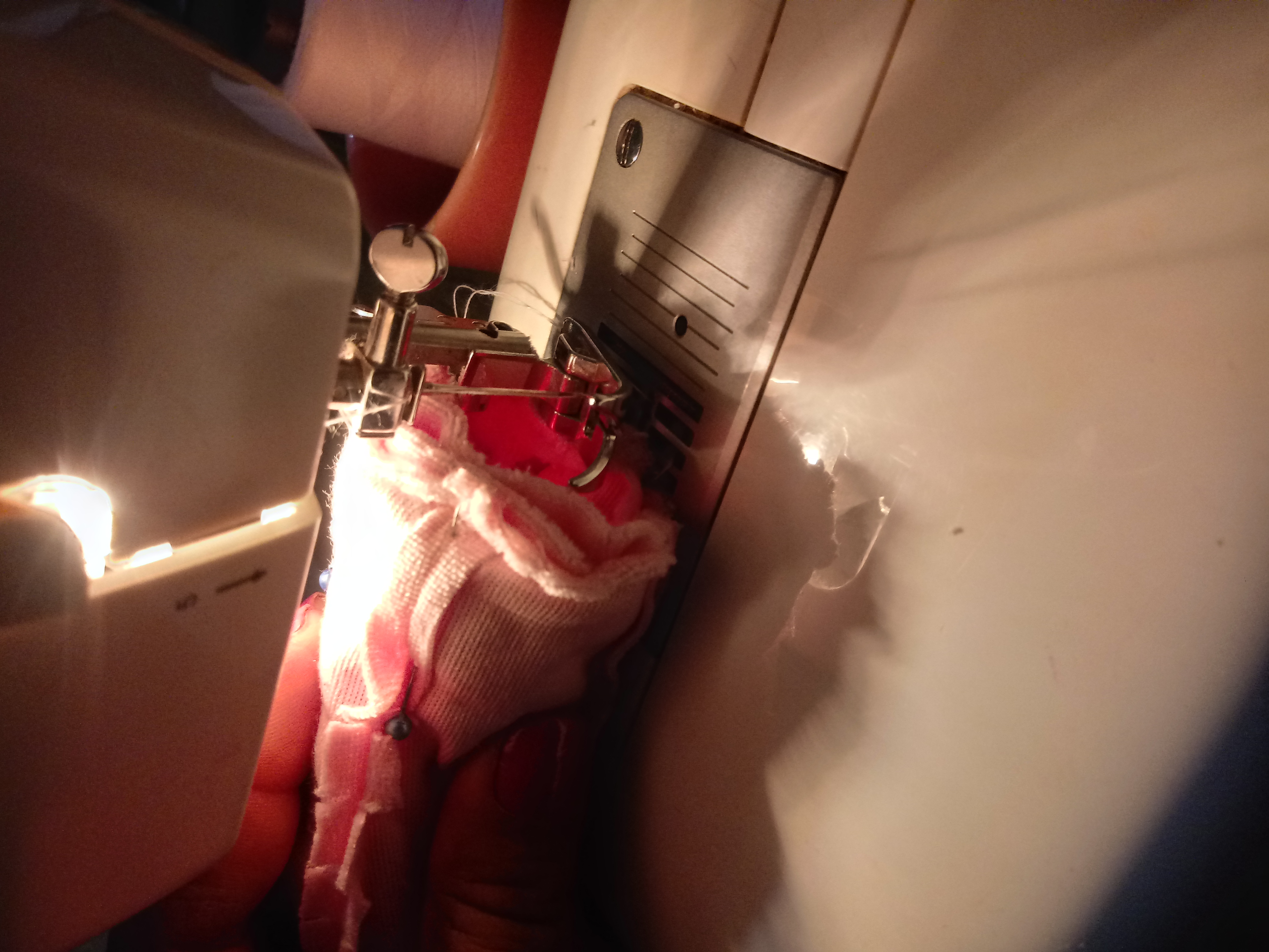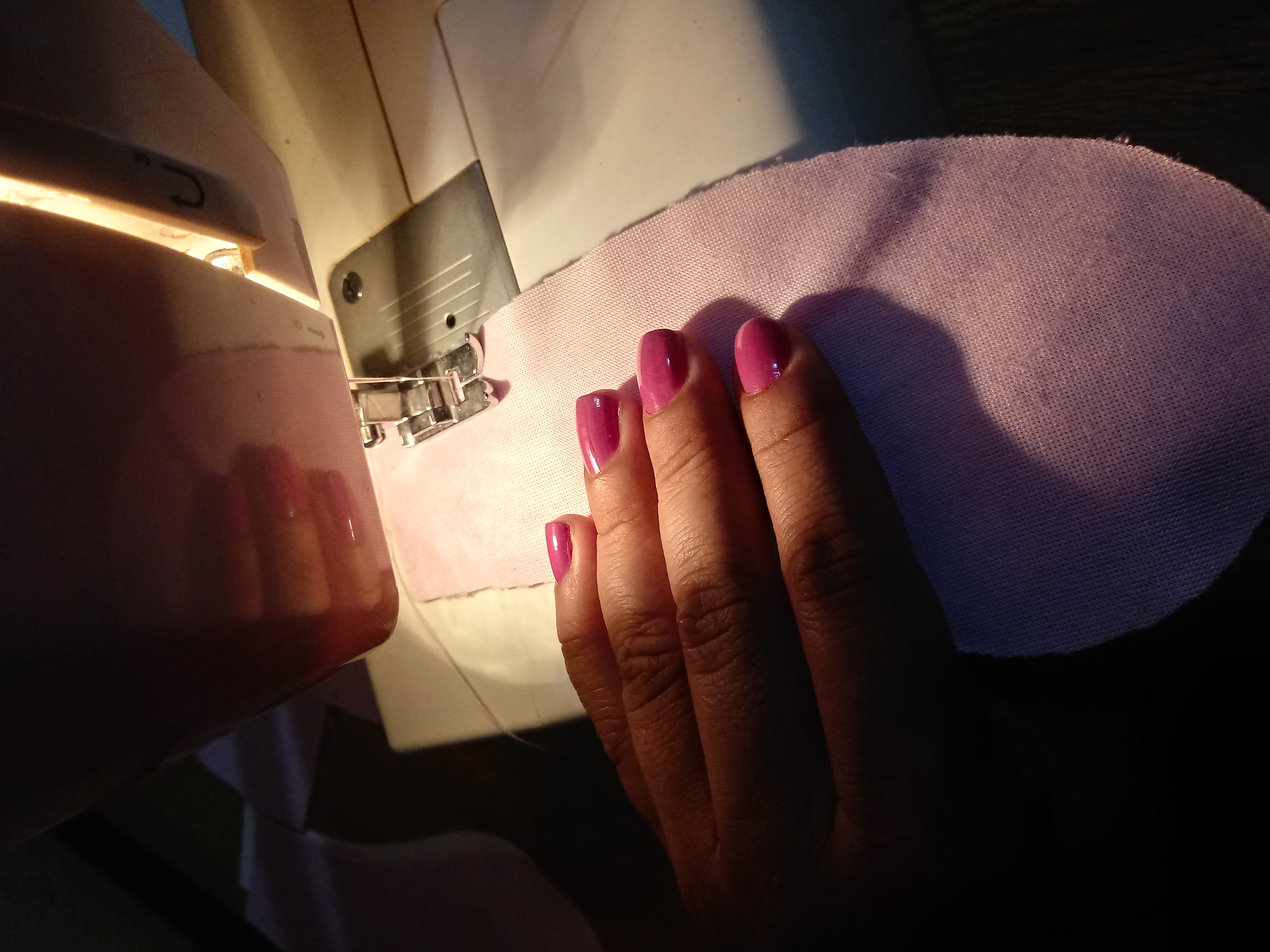 Cosemos los laterales de las patitas. Dejando una pequeña abertura en el talón para rellenar.
