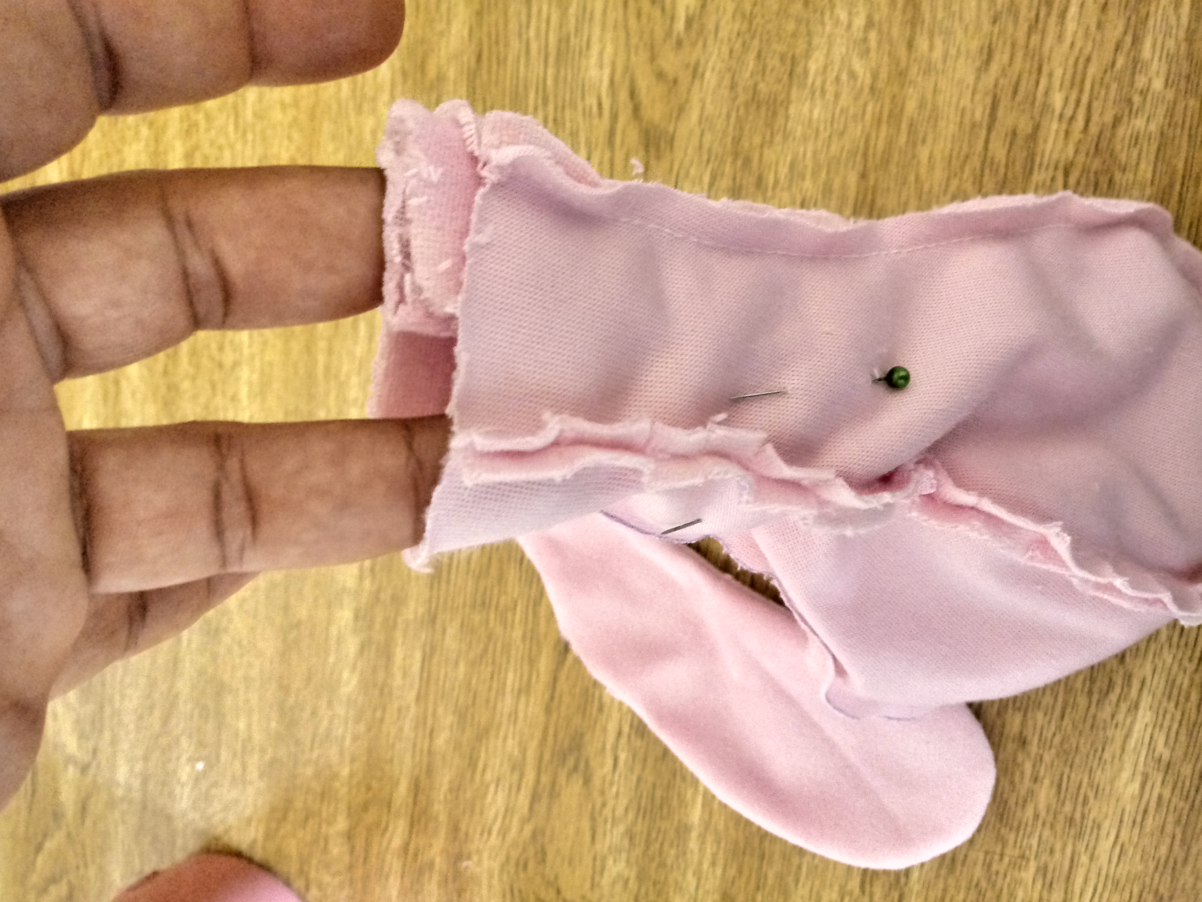 Ahora hay que coser la parte posterior de las patitas, una sugerencia que hago es colocar alfileres para fijar las piezas y luego coser.