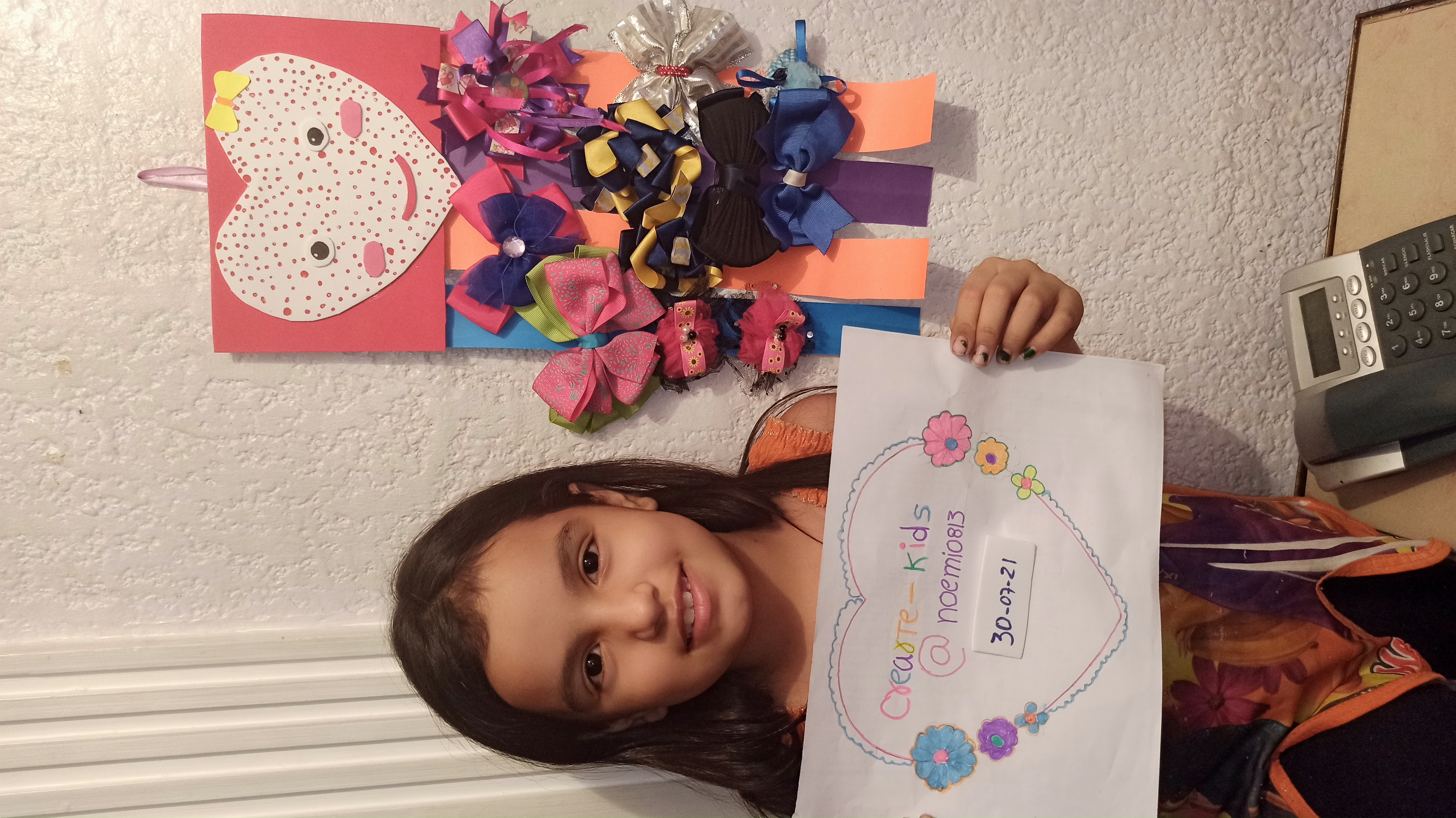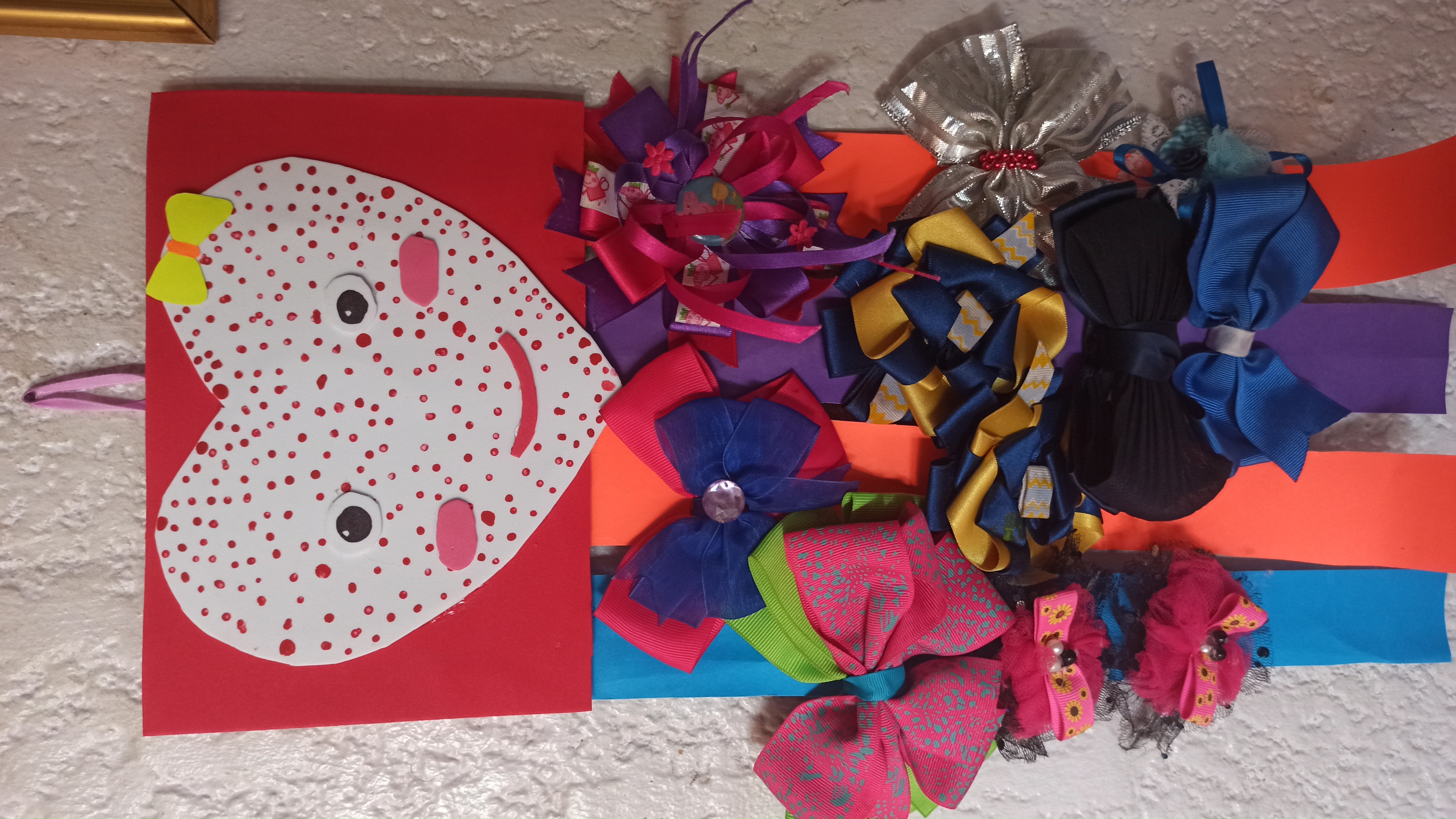 Buenas noches amigos hoy quiero compartir con ustedes mi primera manualidad, mi mama me superviso ya que todavía soy pequeña y algunas herramientas son de cuidado. Hice un porta lazos, me gusto mucho por que lo puedo poner en mi cuarto para decorar y también para tener mis lazos ordenados.