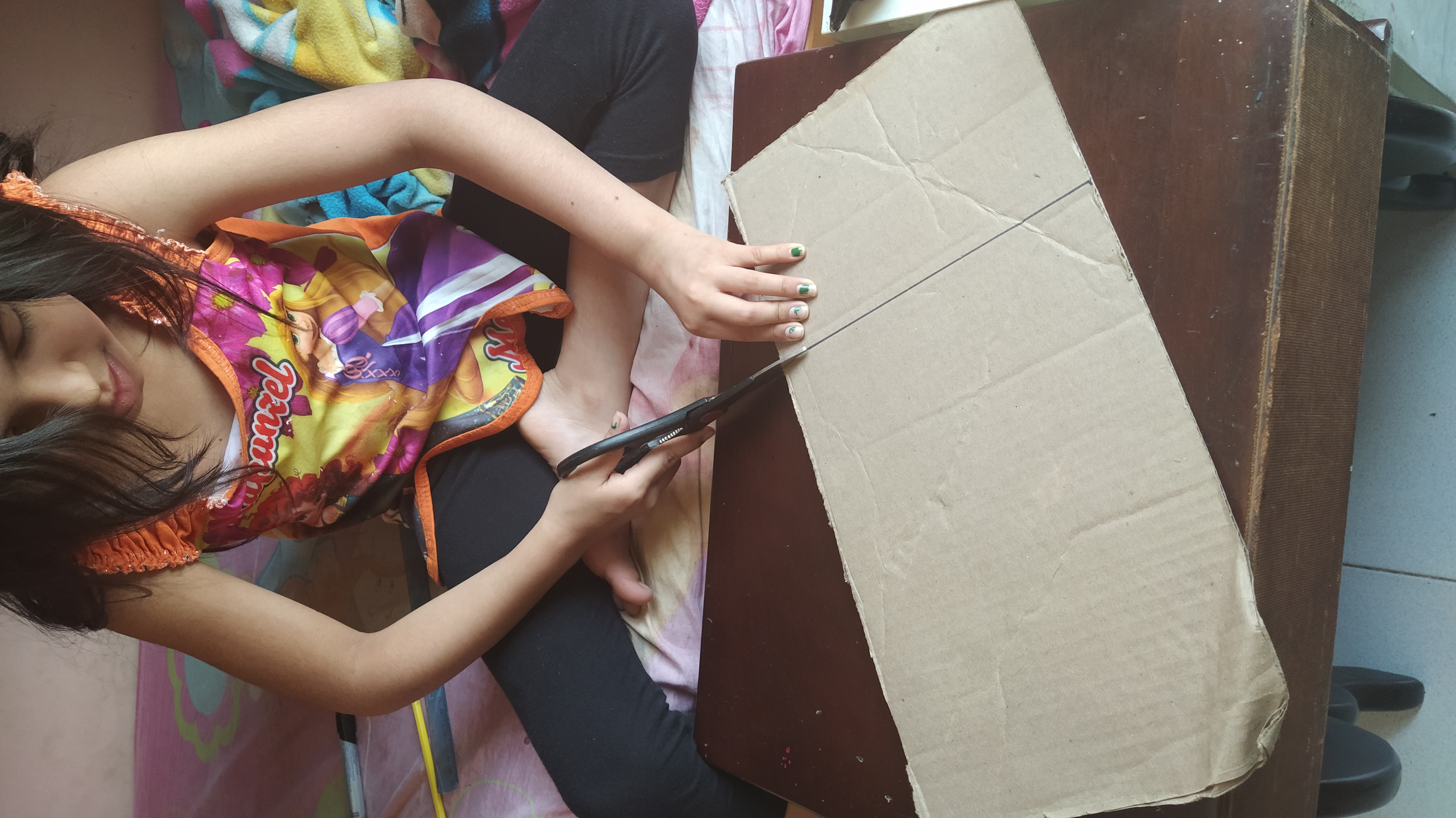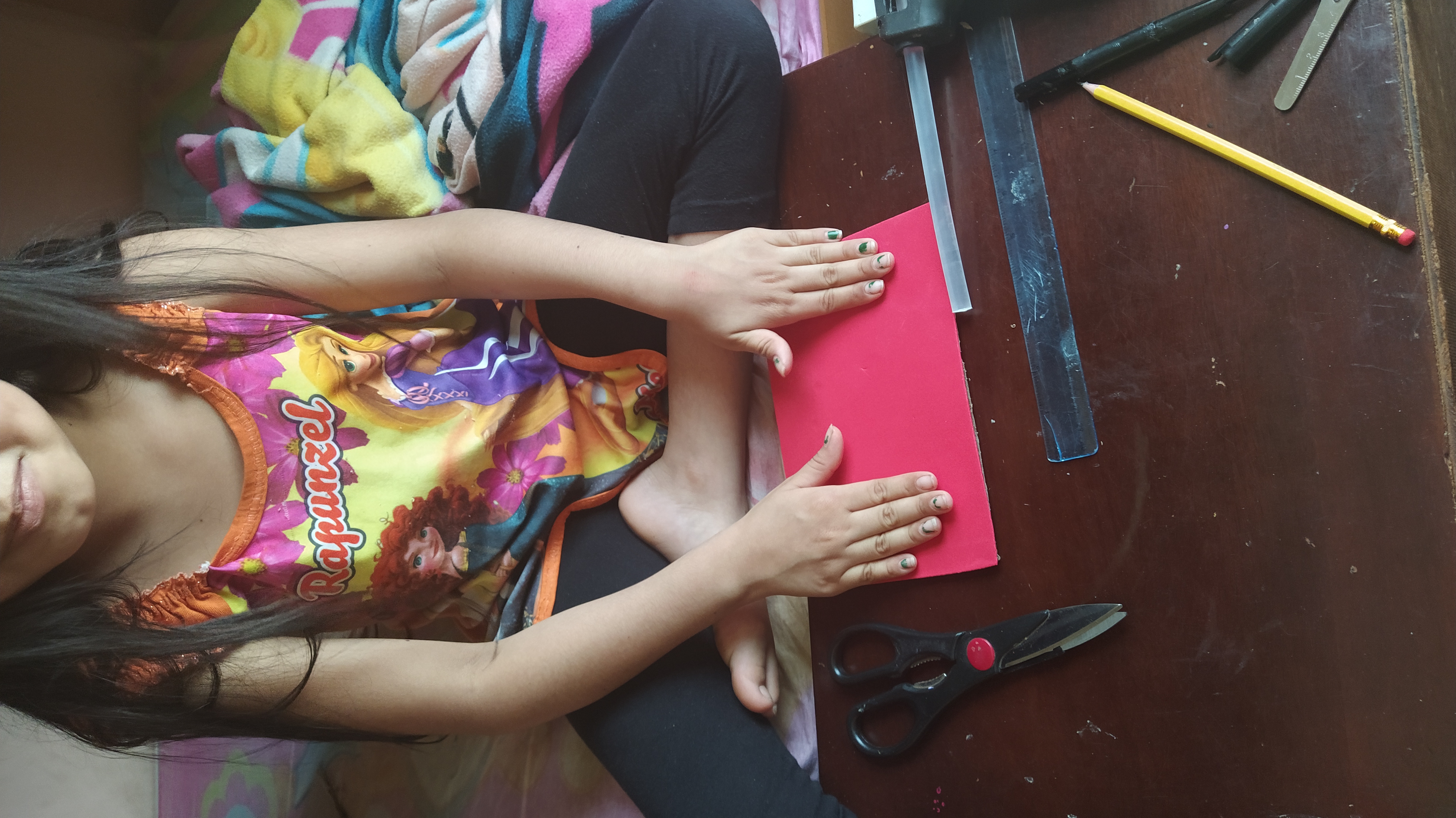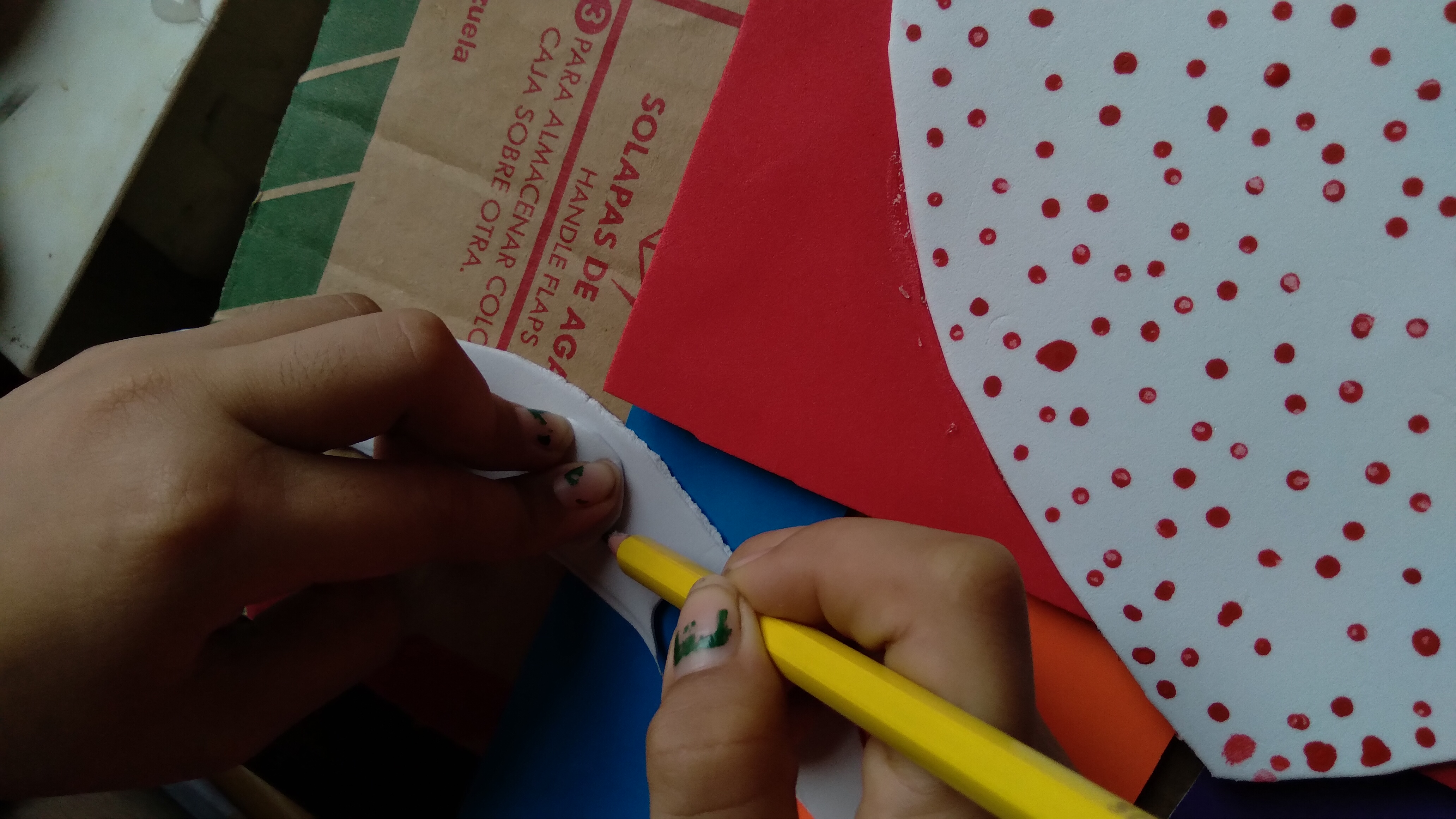 Primero comienzo cortando el pedazo de cartón que voy a usar, y luego medí y recorte dos cuadros de foamy para forrar mi cartón.
