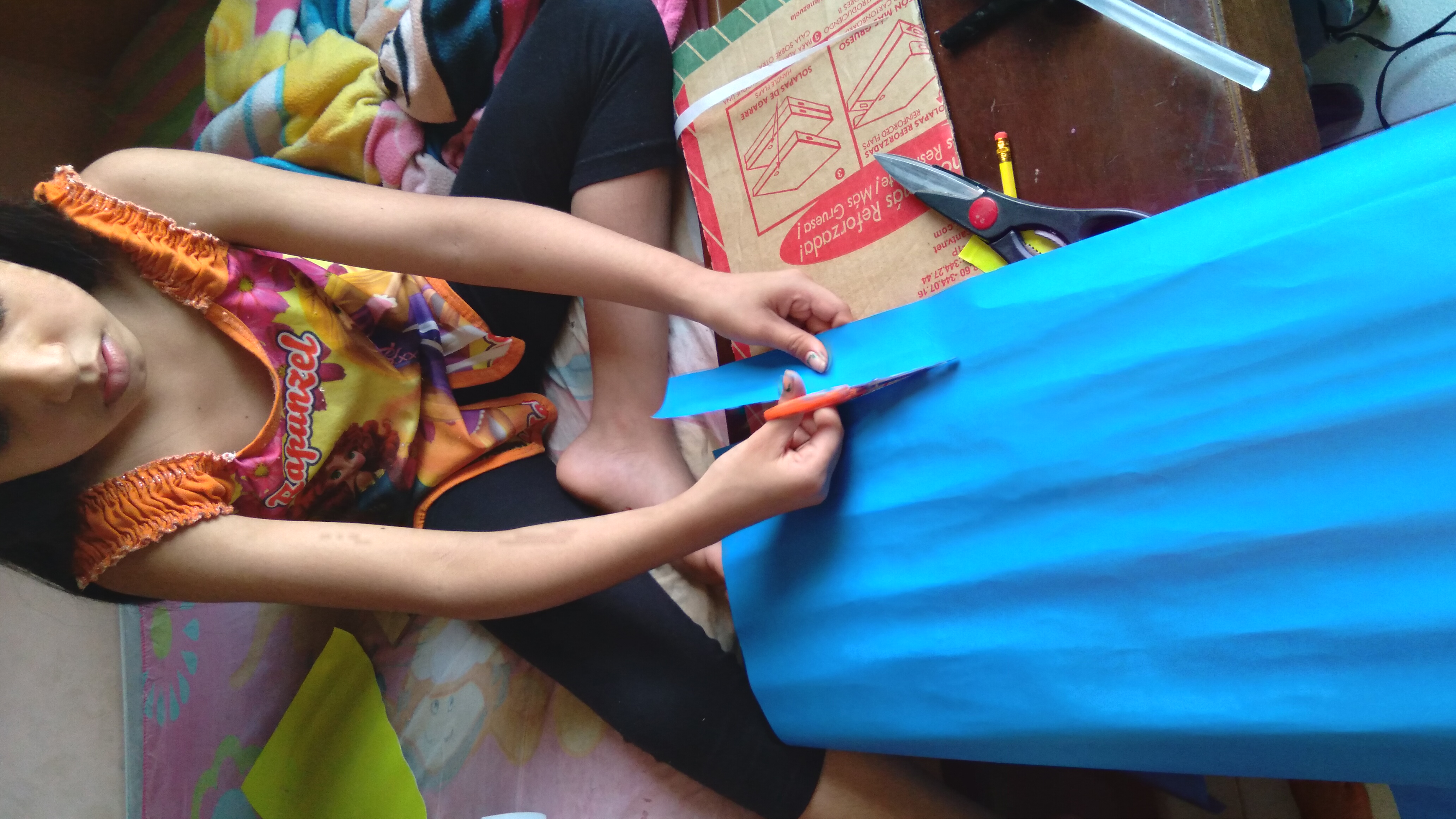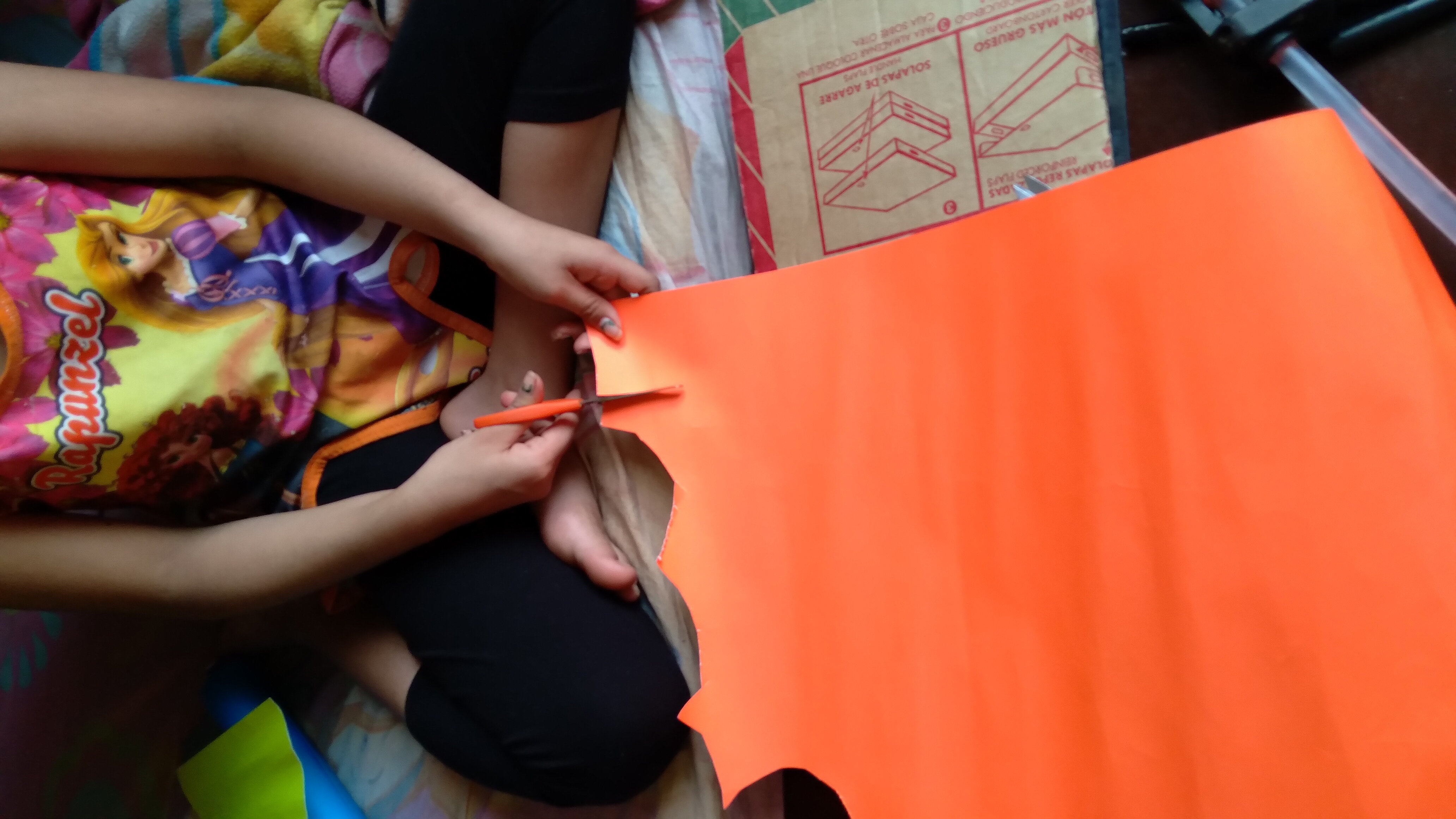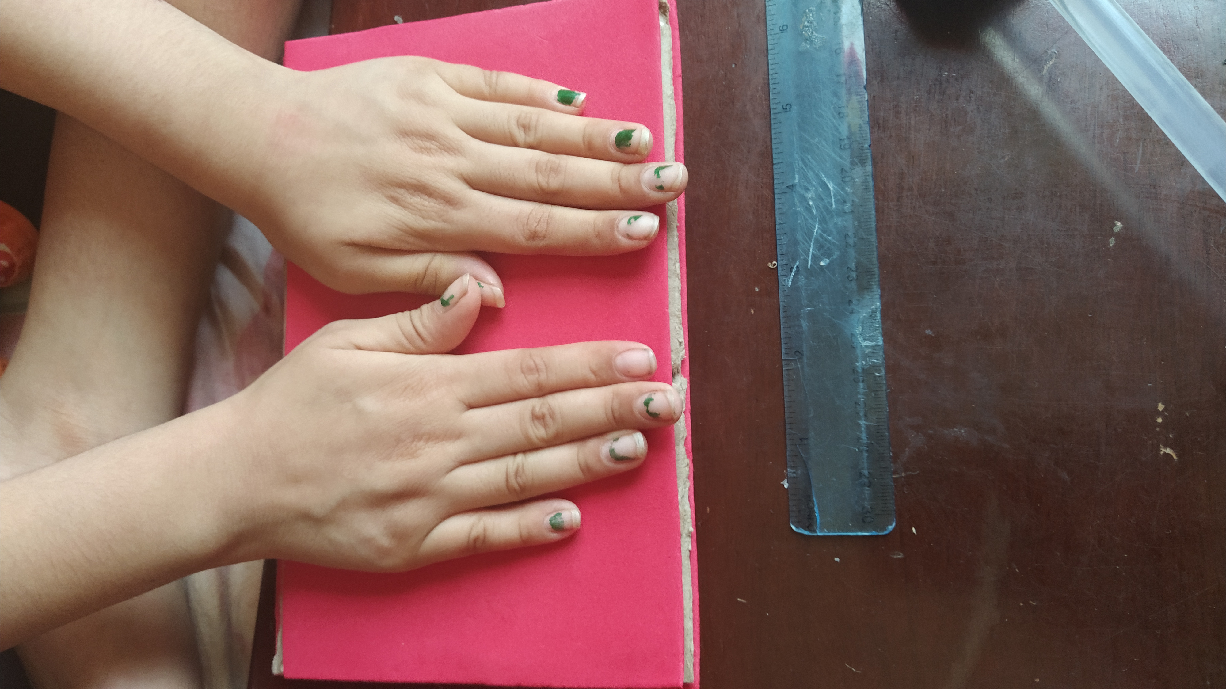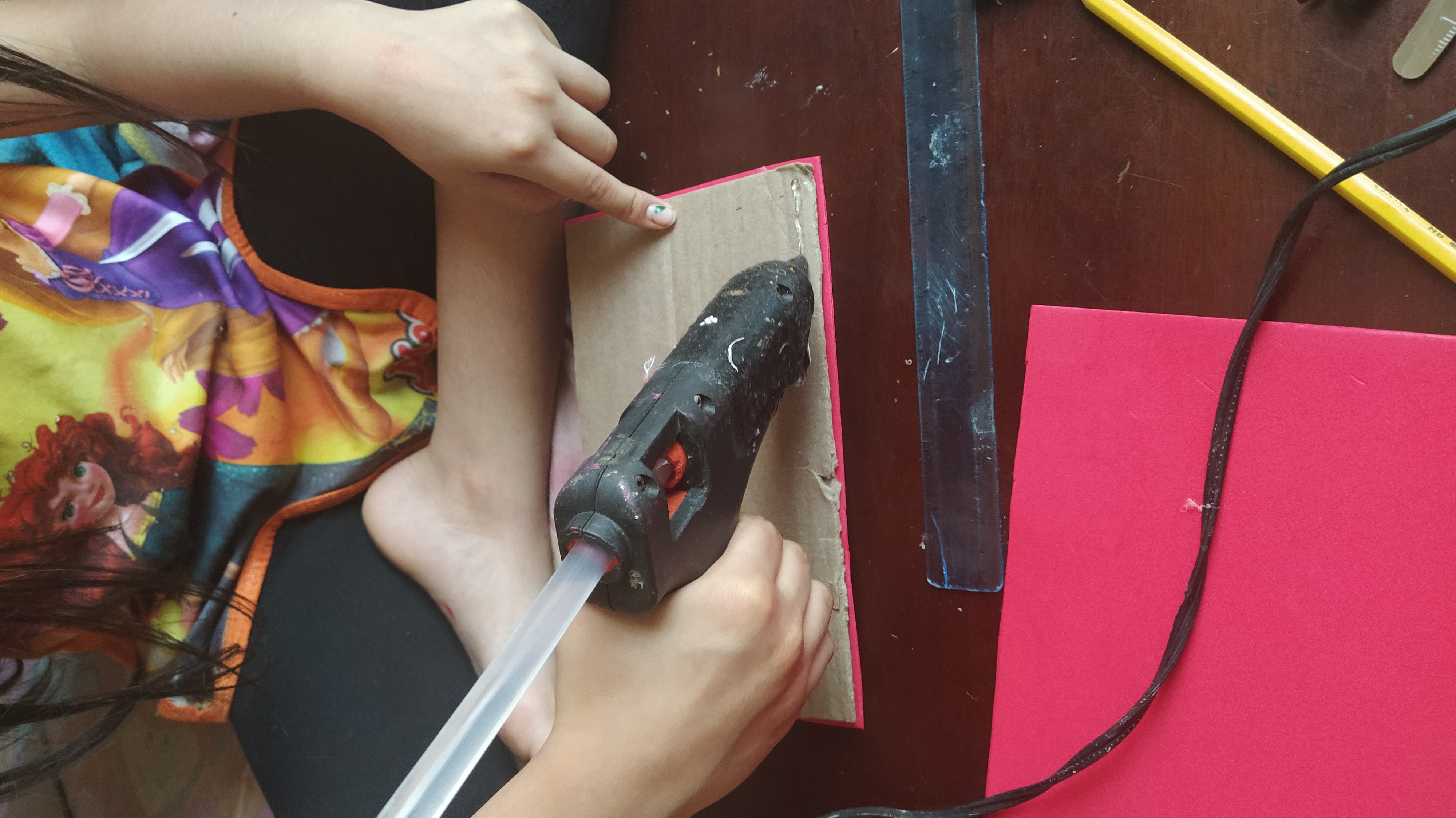 Primero comienzo cortando el pedazo de cartón que voy a usar, y luego medí y recorte dos cuadros de foamy para forrar mi cartón.