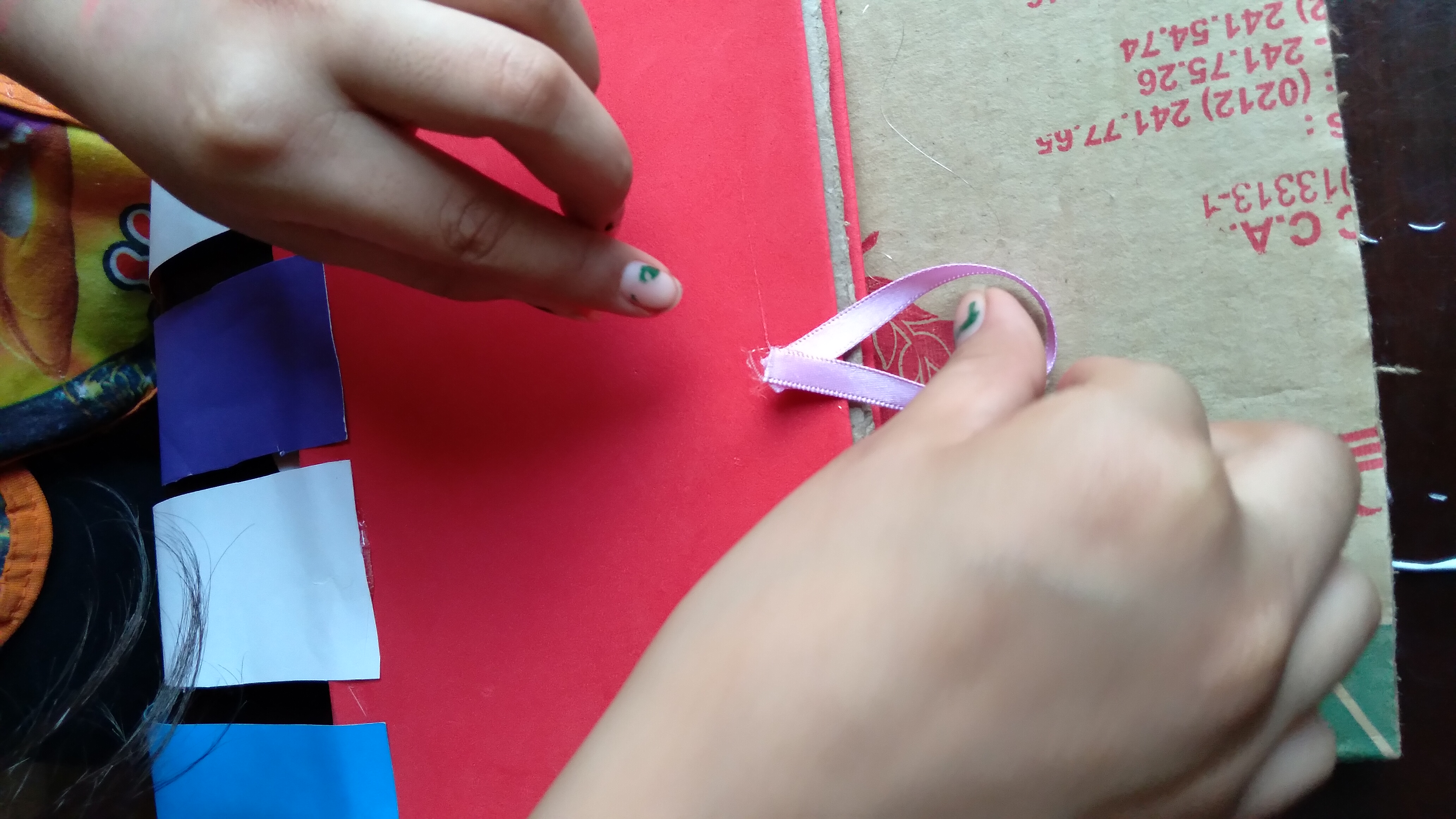 Voy a hacer ojitos y mejillas y boca para pegarlo al corazón y también un lacito, por ultimo pego una cinta para guindar mi porta lazos.
