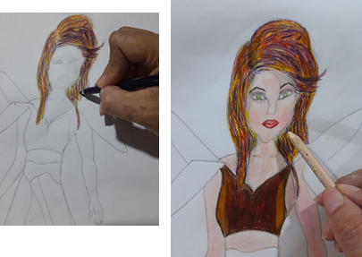 Paso # 3: Aplico color al dibujo de la mujer dándole así expresión con diferentes colores a su cabello.