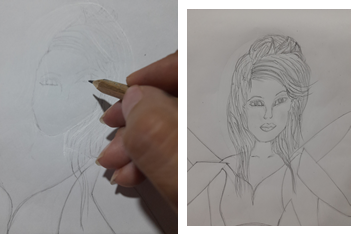 Paso # 1:Comienzo dibujando el rostro de una mujer.