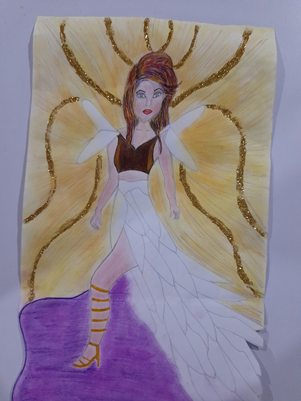 Paso # 4: Dibujo el fondo con colores morado y amarillo, seguidamente aplico escarchas a líneas que darán un toque de brillo.