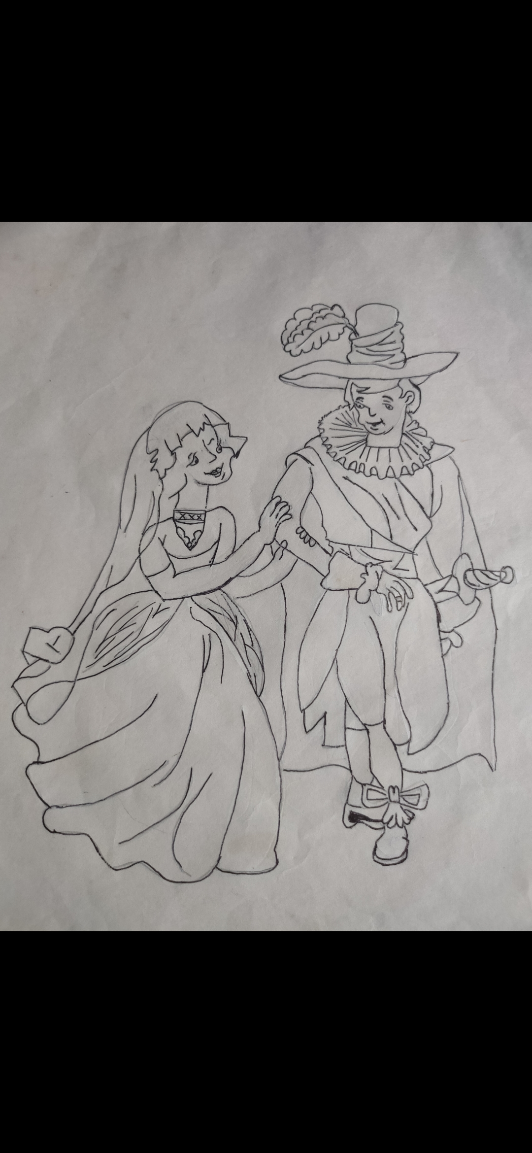 I have drawn a drawing of Prince and Princess, I have tried my level best to draw as good as it is possible but though I am not good in colouring that's why I have not coloured it😉