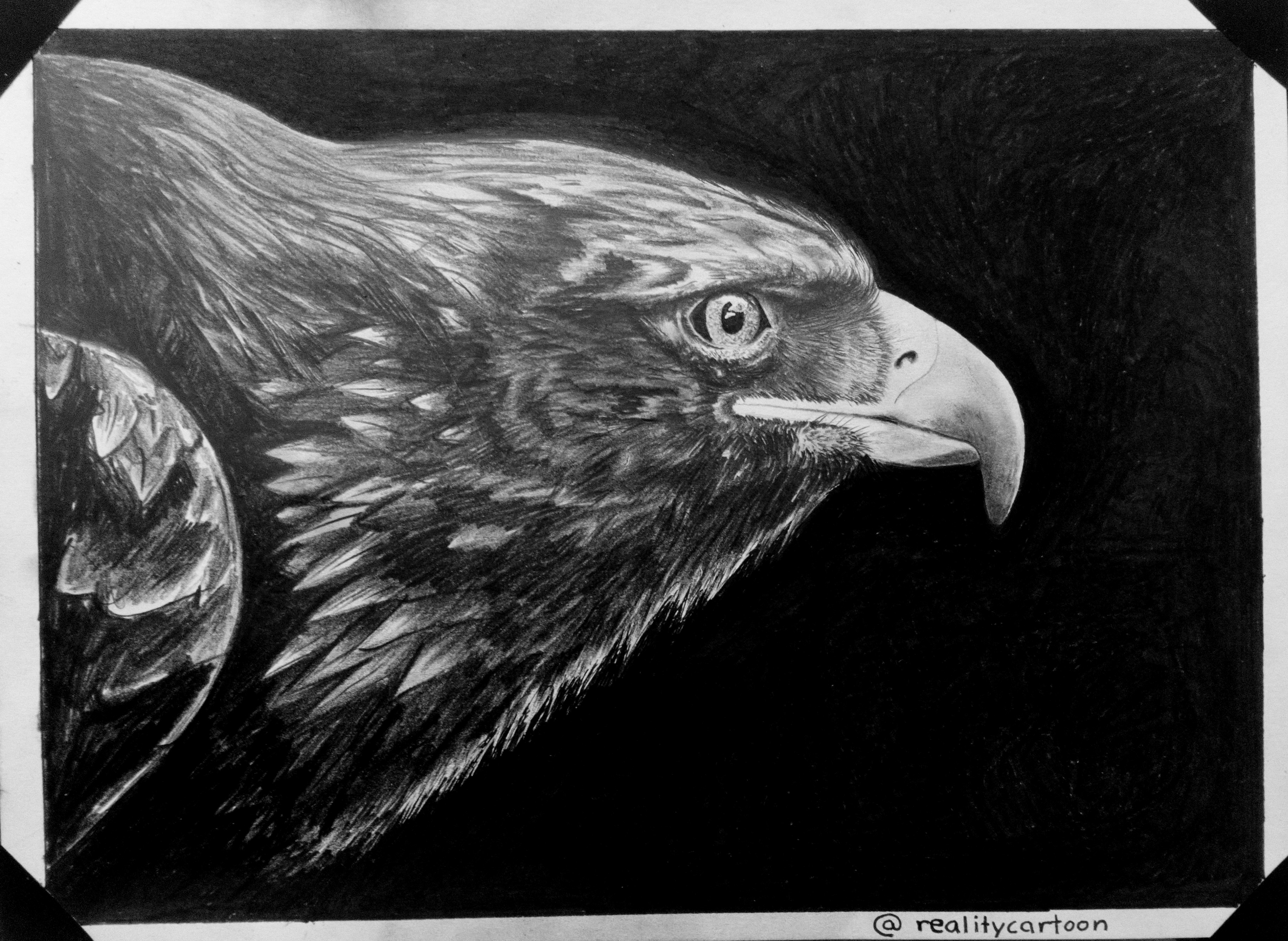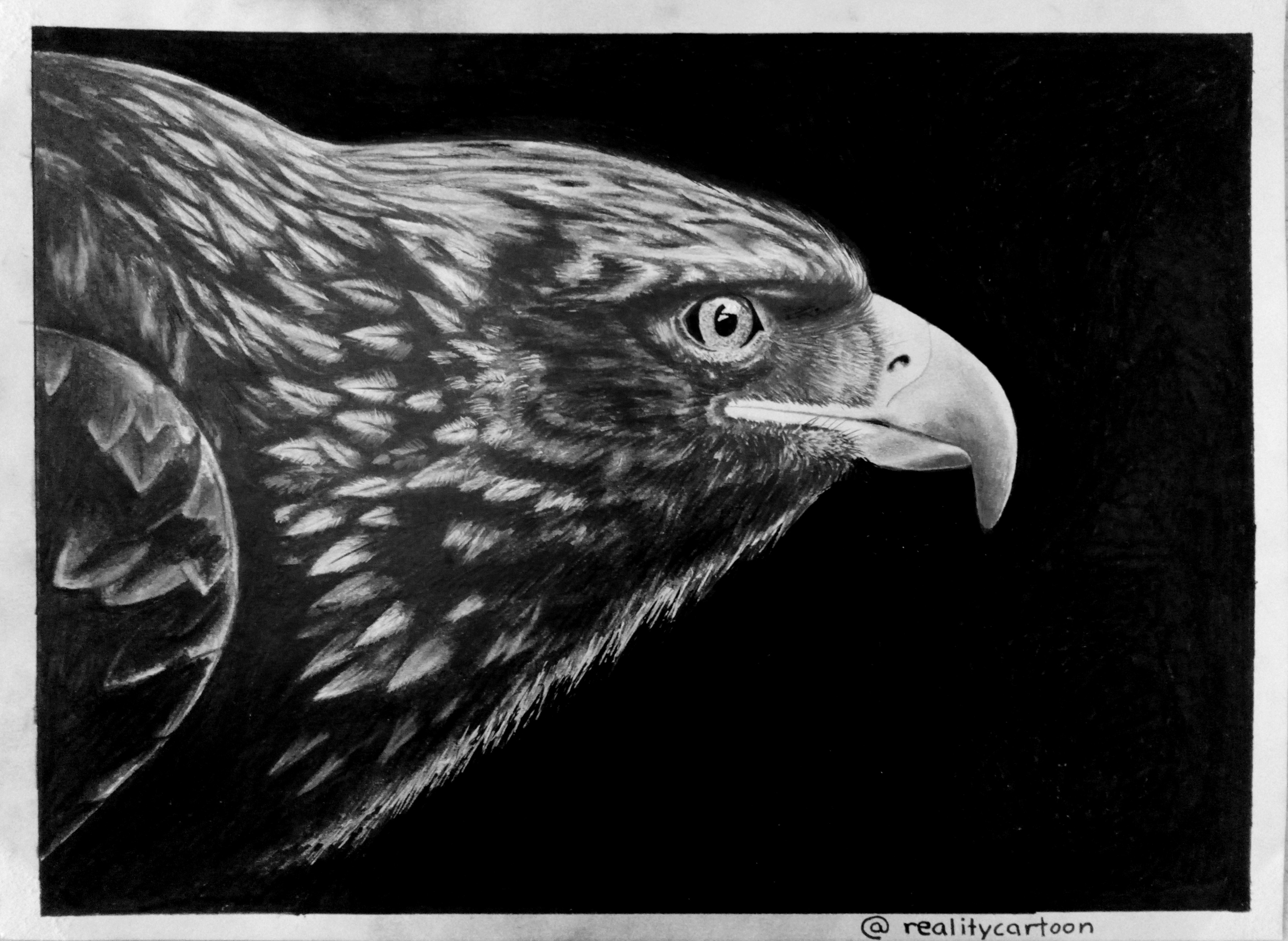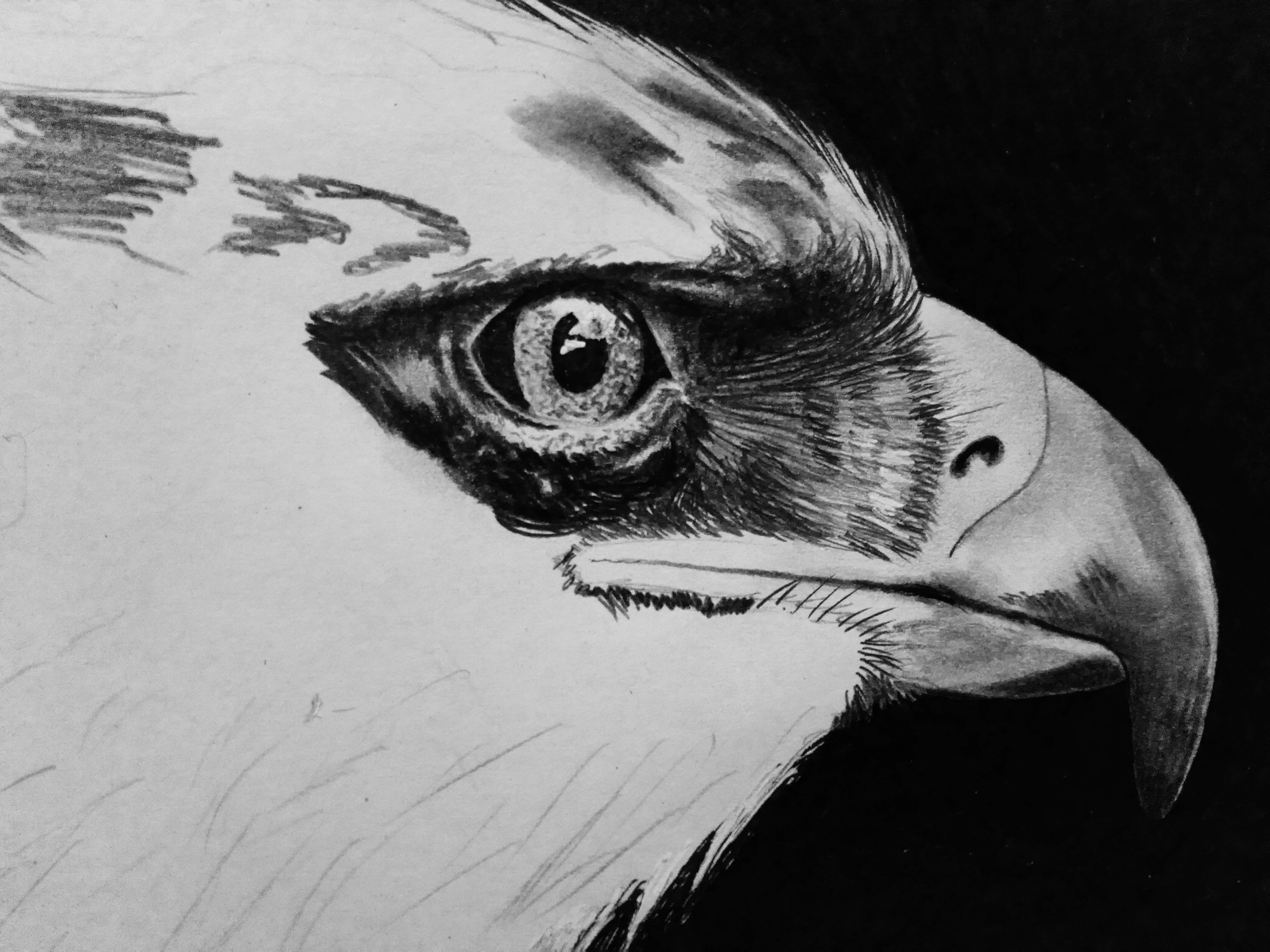 I like that you draw with the eraser. I'm so bad with it and always erase what I actually didn't want to :) Your eagle does almost look like a photograph. You included great detail and the eye is spot on. I like the light reflection that you included there.