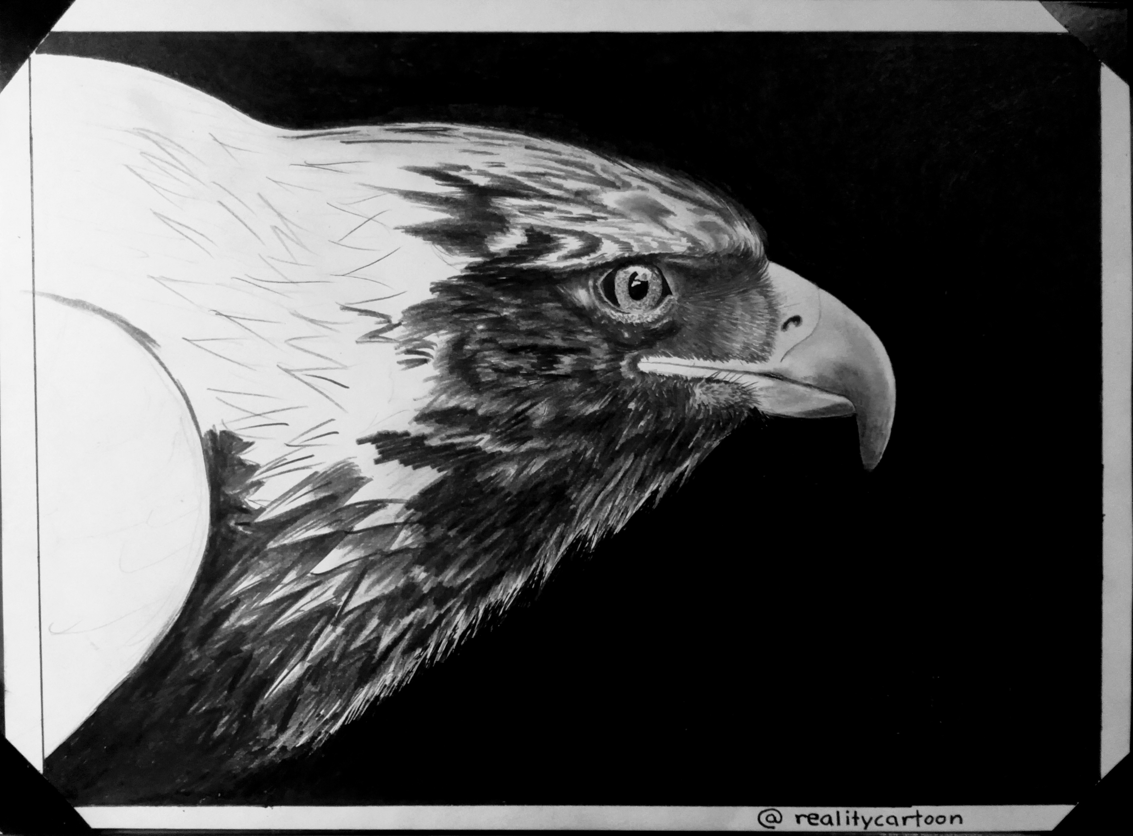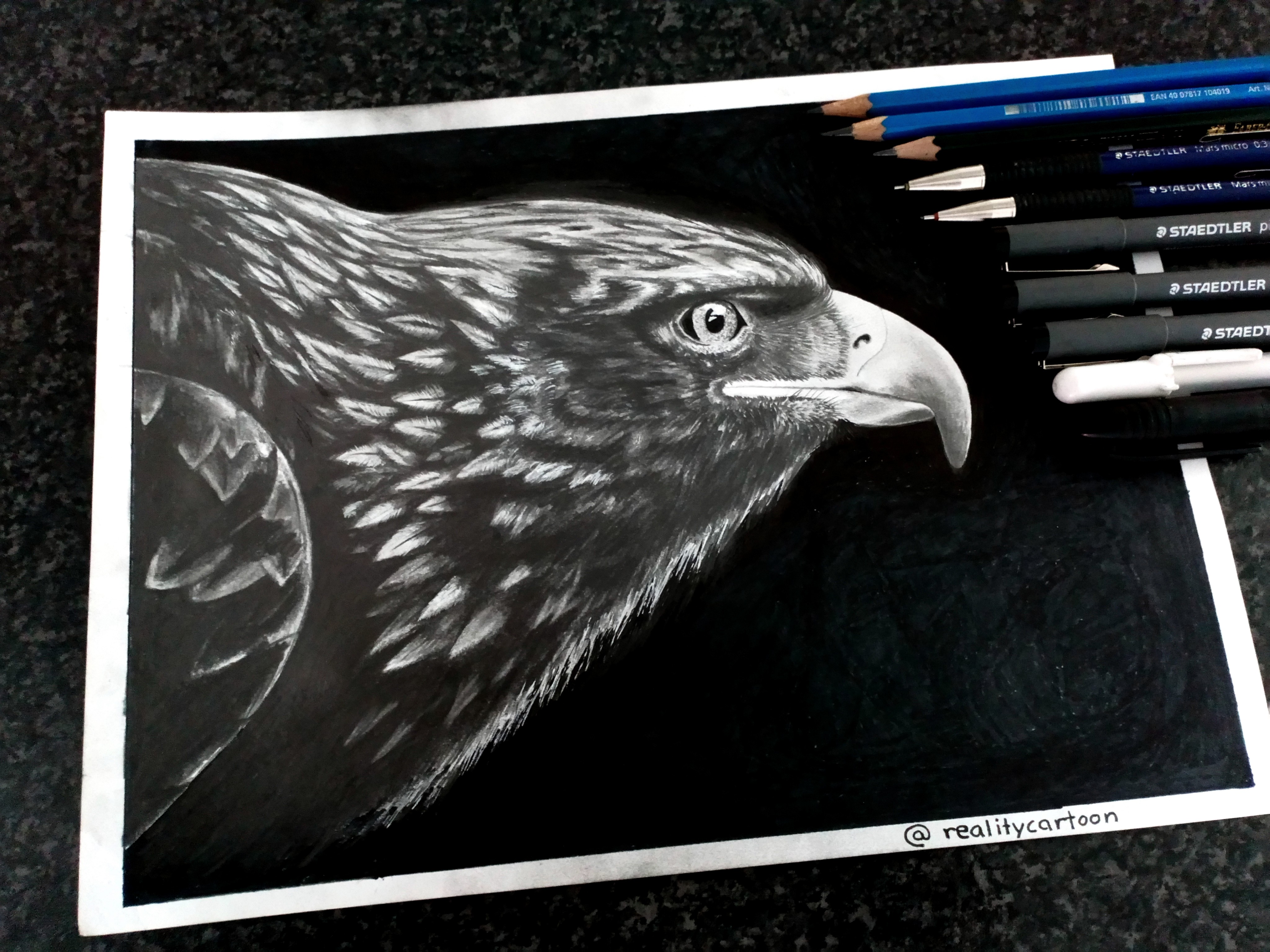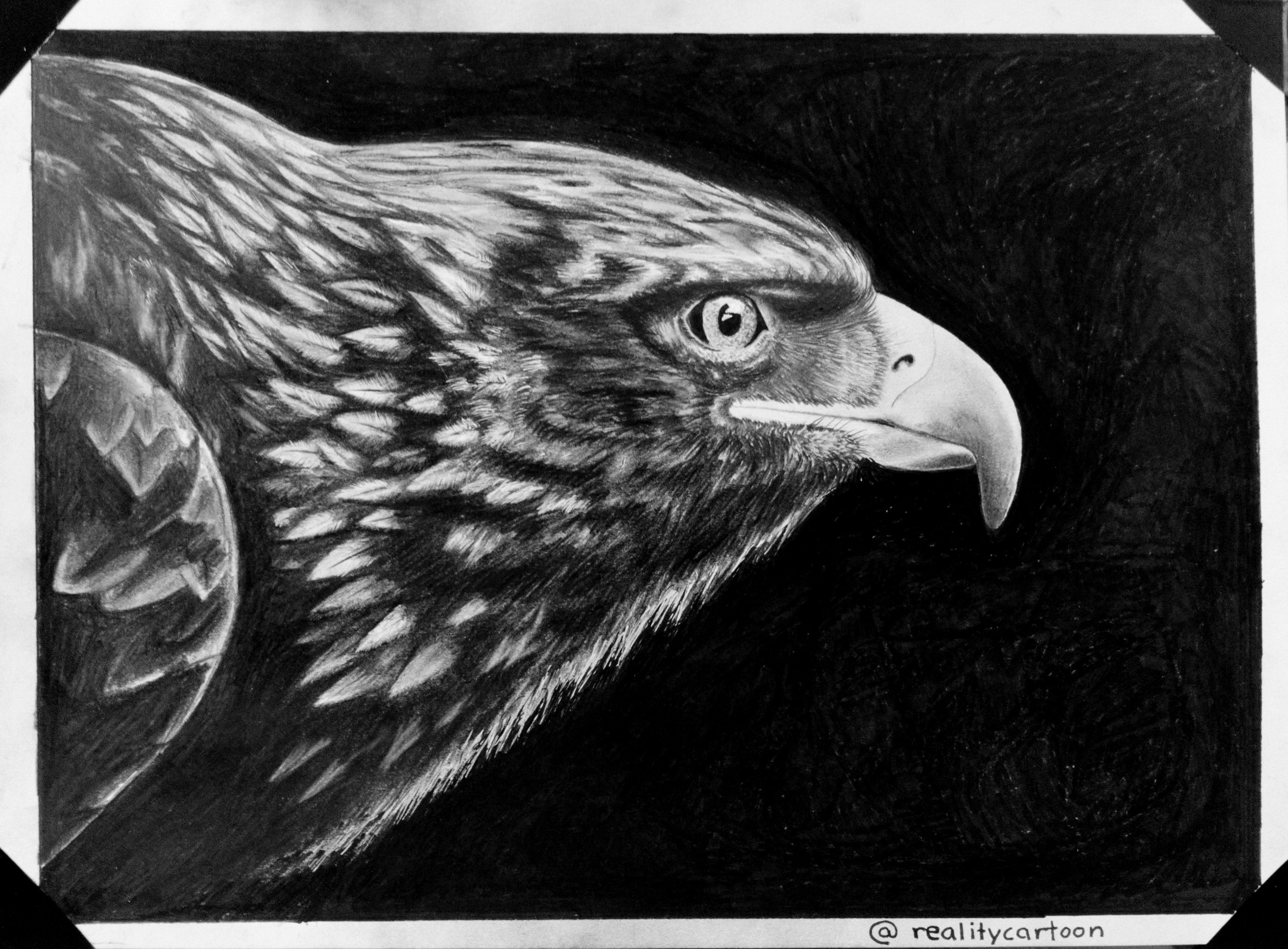 I like that you draw with the eraser. I'm so bad with it and always erase what I actually didn't want to :) Your eagle does almost look like a photograph. You included great detail and the eye is spot on. I like the light reflection that you included there.