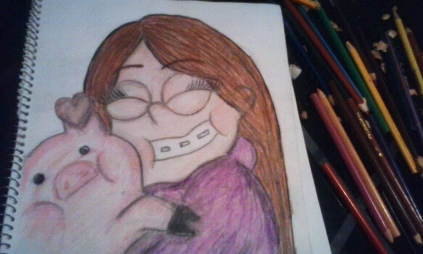 Dibujo de mabel y cerdito pato de gravity falls