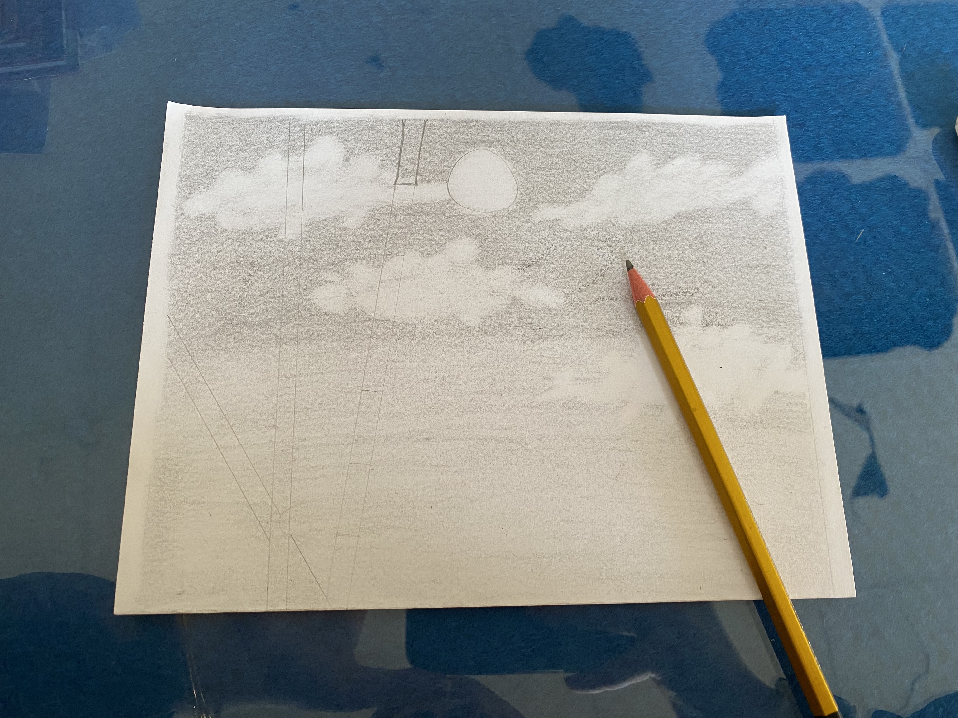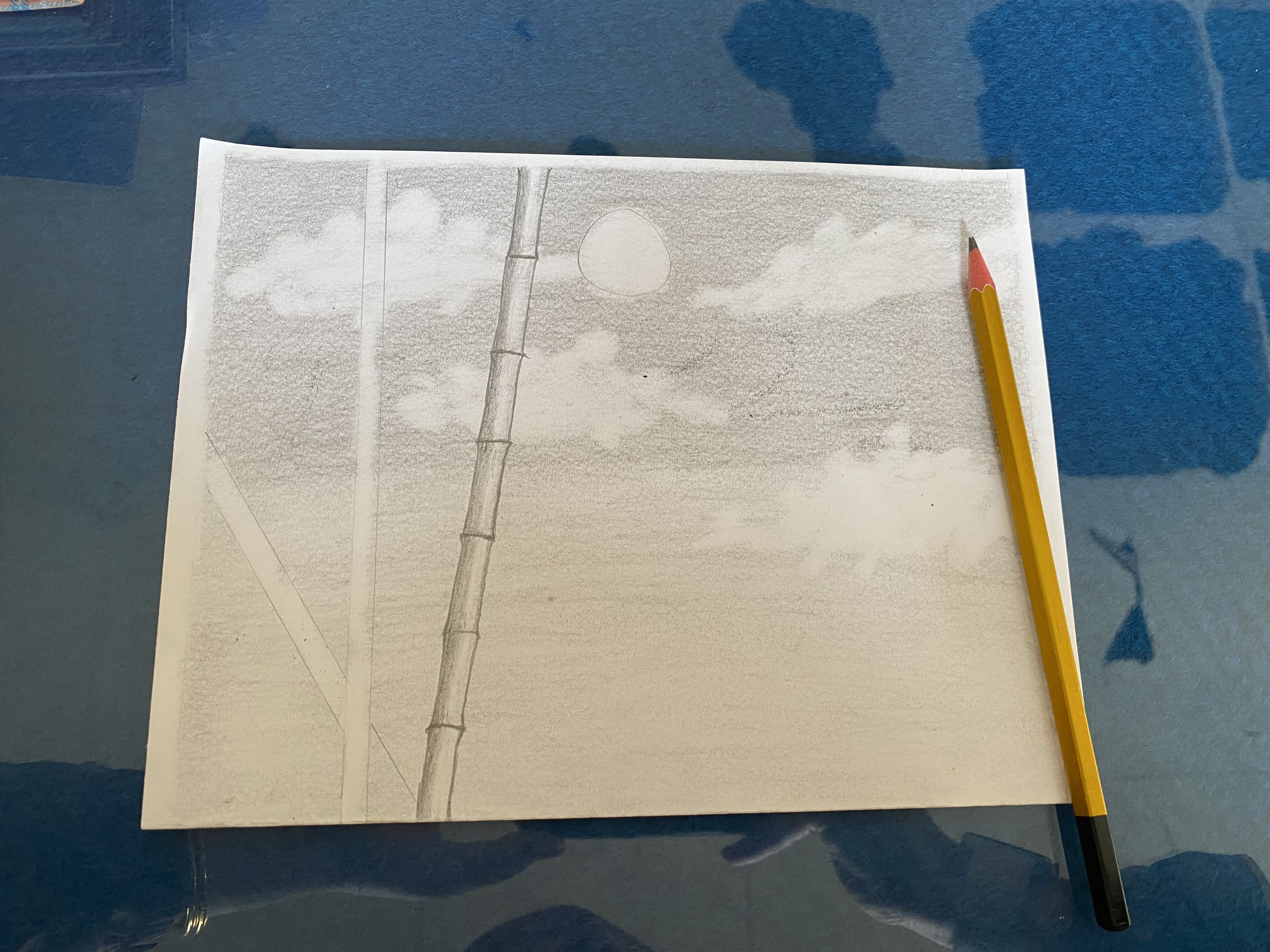 Como el cielo es el protagonista de tu dibujo, fuese sido positivo realizar un sombreado más minucioso en el cual destacara un poco más ofreciendo mayor realismo.