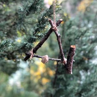 Cuando me tomaba el café, noté fácilmente que, en el árbol fuera de la ventana de la cocina, había otro símbolo de madera que estaba colgando.