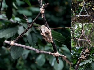 Entonces cuando me acerqué para tomarlo, vi OTRO MÁS en un árbol de atrás. Y cuando salí de la casa, me di cuenta de que durante la noche aparecieron más símbolos de madera. Encontré en total 8, guindando en árboles alrededor de la casa.