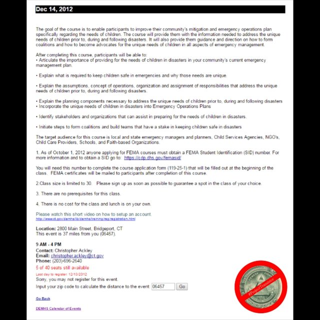 The 1 minute video below pointed out and was drawing attention to the FEMA Drill scheduled on 12-14-2012.