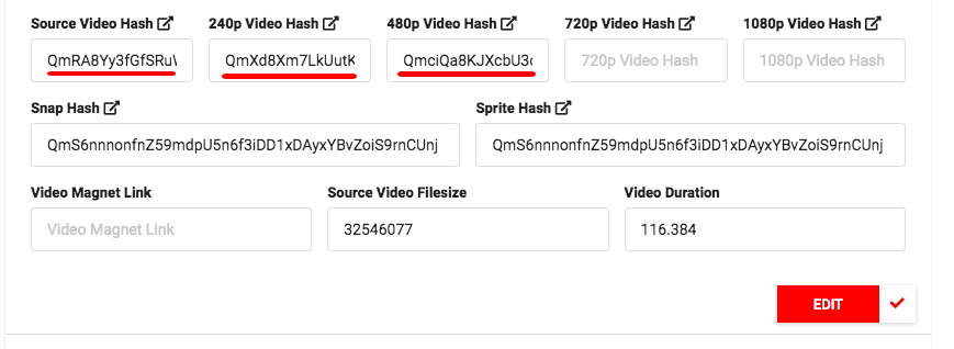 Scroll down to this section where you see the Source Video Hash, 240p Video Hash and 480p Video Hash.