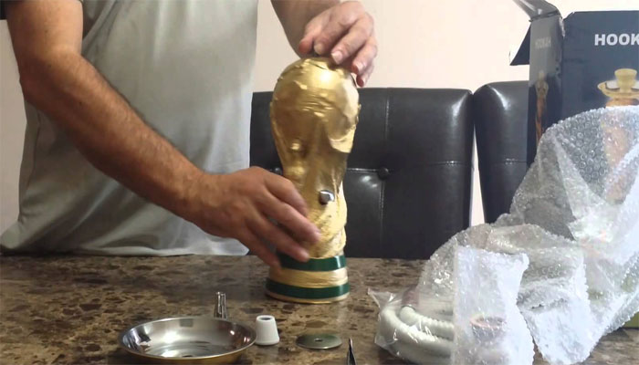 Bidding farewell to the World Cup after disappointing performances by their national team, Egyptian soccer fans have decided to ease their pain by turning the tournament’s iconic trophy into a hookah pipe.