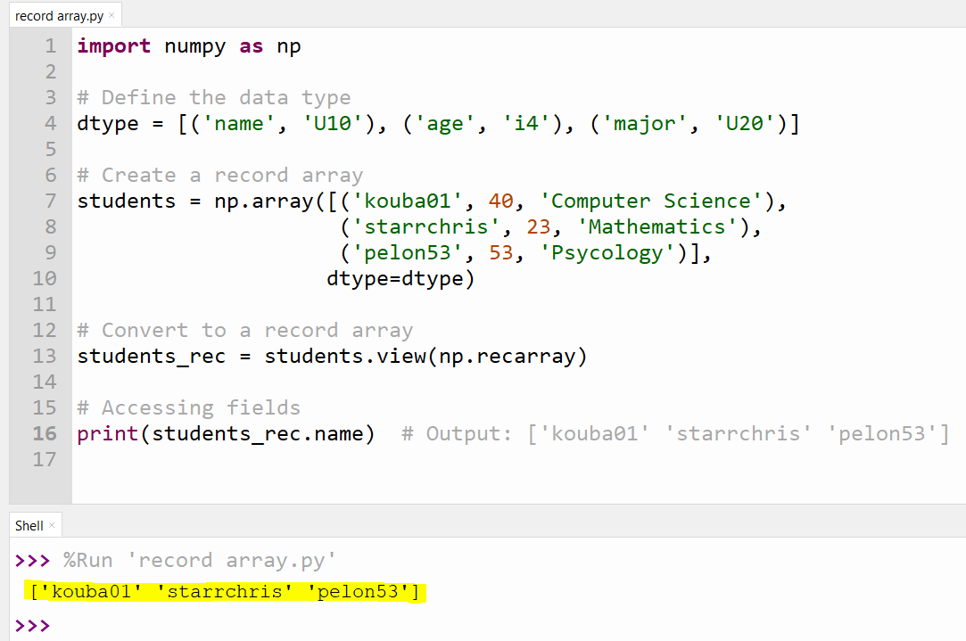 III. Working with Record Arrays in NumPy