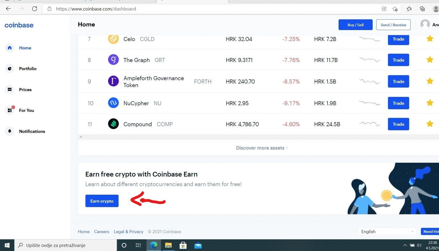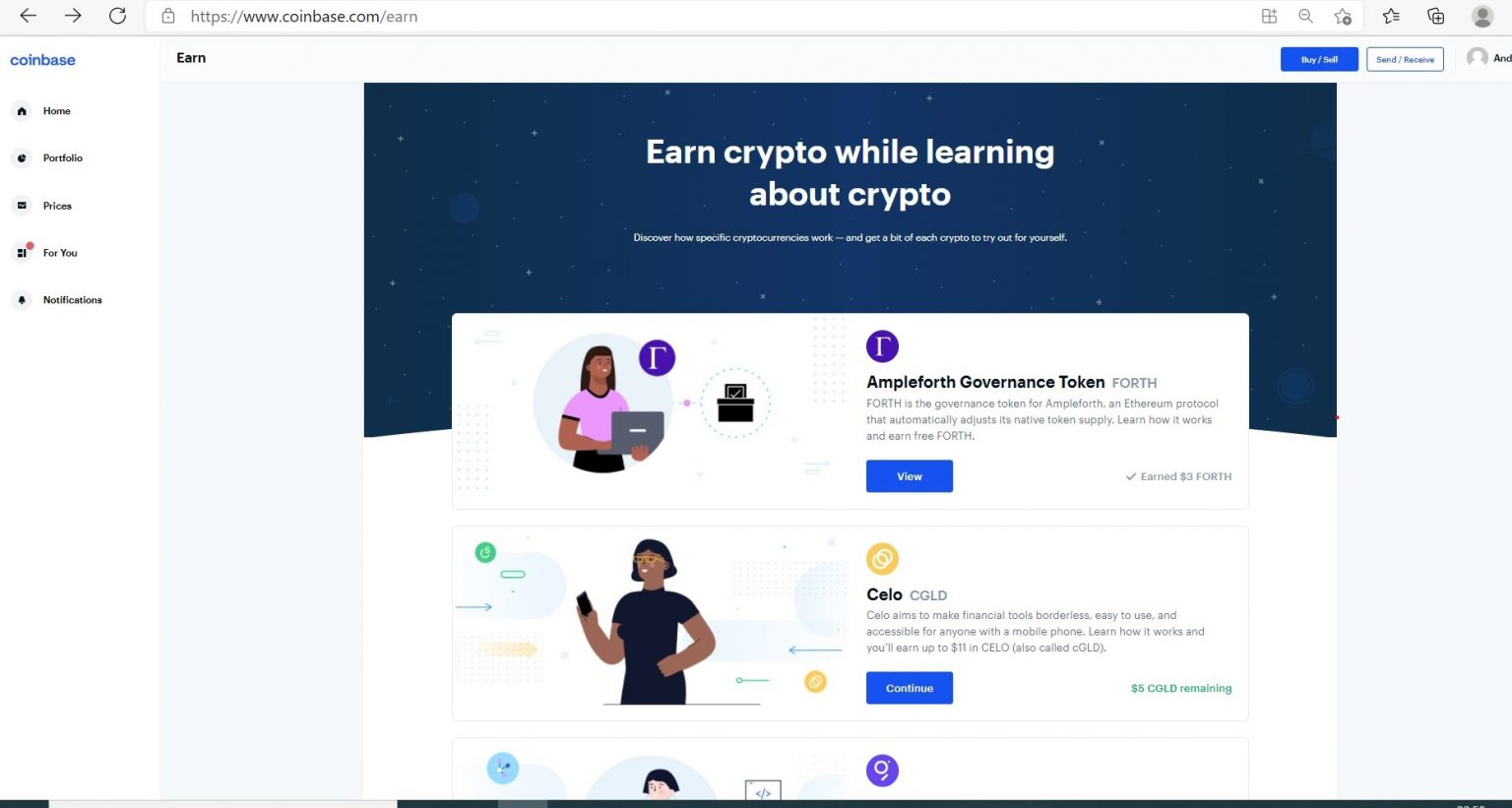 There is a web site of serious company – COINBASE, you have to register at and provide some documents. This is crypto exchange company, one of the biggest in industry, whose stocks are listed at NASDAQ stock exchange. After that and logging in to the home page you can navigate to bottom of page and click button Earn crypto. Than you will be navigated to section Coinbase Earn.