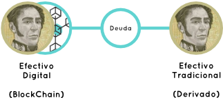 - Con esta relación de derivación el efectivo podrá ser cambiado por efectivo digital y viceversa en cualquier momento queriendo decir que el poseedor de efectivo será acreedor de la misma cantidad de efectivo digital y esta relación la garantizaría la deuda creada por derivación en el BCV.