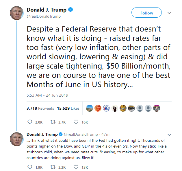 But now I realize that Trump is actually going to dodge the blame! It's amazing. It's all the Federal Reserve's fault, and specifically Powell's fault.
