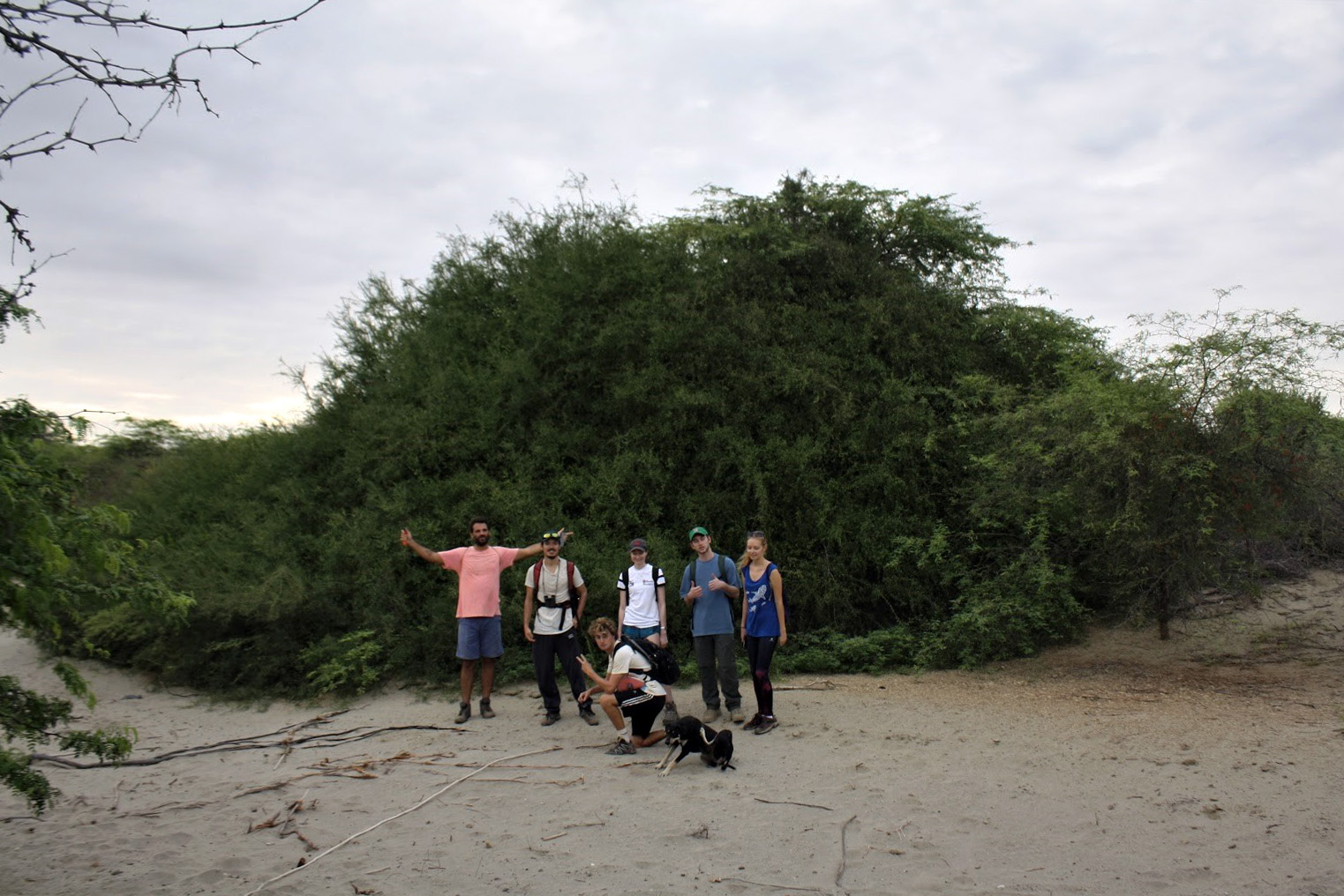 We arrived to Piedritas around 6:45 am with a team of seven, including interns Elliott, India, Camille and myself. We were led by directors Diego and Andres and Ellen, our coordinator. We began the day by walking through the small, quaint village and up into the wilderness area. The goal of the day was to walk through several trails and set way-points to map out future hiking routes that the community can later approve. The first trail we explored was beautiful and well maintained. We made stops to look at huge native plant species like lipe (or pial), palo negro (or canutillo) and algarrobo. Diego explained their importance in providing shelter and food for the endangered endemic bird, the Peruvian Plantcutter. According to dry forest and Peruvian Plantcutter experts like Jeremy Flanagan from SOS Peruvian Plantcutter and Edward Liñán (who published a scientific paper about the plantcutter in Piedritas) these plant species are important for management strategies that aim to conserve populations of this threatened bird in the region.