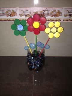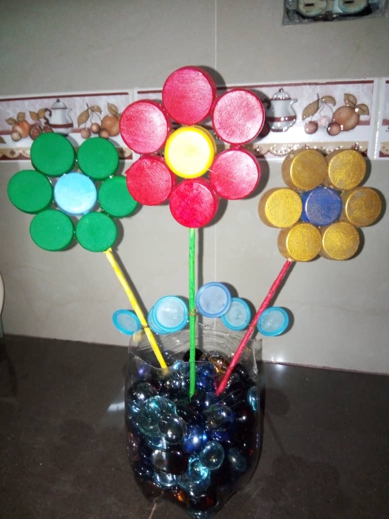 The material we used to make this flower arrangement was plastic, which takes more than 150 years to degrade and almost 1000 years if it remains buried, which contaminates our environment, and what better way to reuse it than applying creativity.