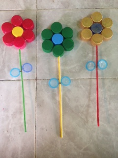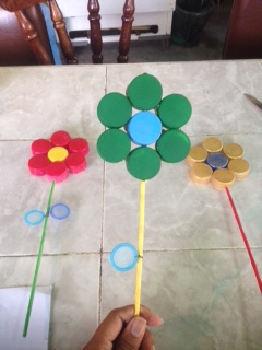 Finally we put our beautiful flowers in the container.