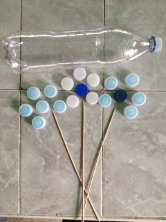 Later we proceed to place the leaves of the stem with the internal plastic that brings the lid and we hold it with a very thin wire or with thread, it depends on your preference, and with this we finish the flower.